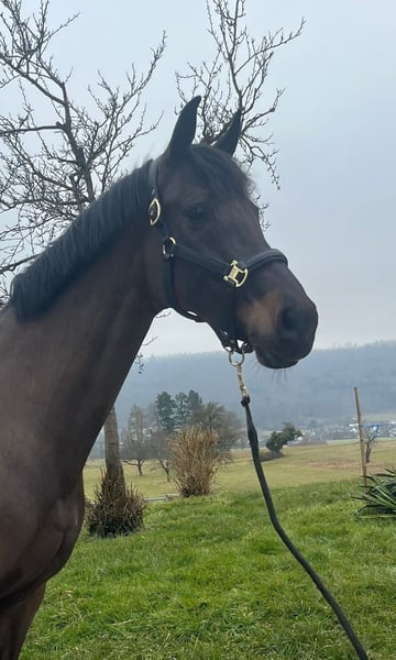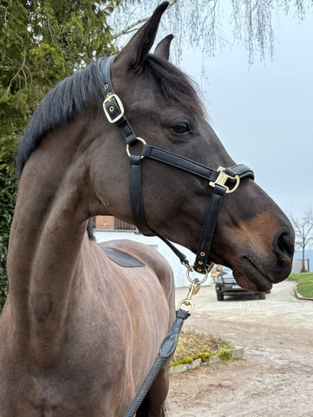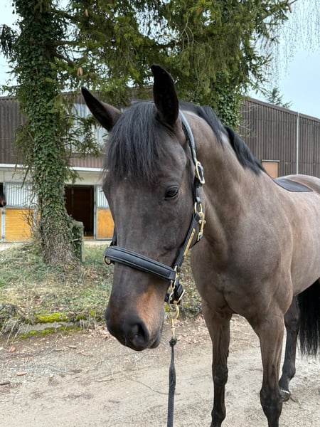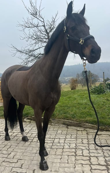Bilderbuch Stute mit 5-Sterne plus Charakter und dem ''Liebe auf den ersten Blick''-Effekt. Oldenburger / 10j. / Schwarzbraun / 1.70 V: Glock's Dream Boy M: Carina du Mevgon VM: Carry Gold Dream Day hat einen Charakter, wie man ihn sich im Märchenbuch nur zusammenmalen könnte. Wenn man den Stall betritt und ruft, streckt sie sofort ihren hübschen Kopf aus der Boxentüre und begrüsst einem freudig. Sie ist unheimlich sozial gegenüber Zwei- und Vierbeinern. Schlagen, beissen oder quietschen, absolute Fremdwörter. Keinerlei Stutenallüren. Super verschmust, neugierig und aufgestellt, weiss sie genau, wie man Menschenherzen im Sturm erobert. Beim Reiten mit sehr viel! Go ausgestattet aber jederzeit gut zu händeln. Auch von schwächeren Reitern, da sie auch, wen sie ''heiss'' wird, sehr brav bleibt. Bocken, Steigen oder sonstige Unarten, hat sie definitiv nicht. Sie war mehrere Jahre in Profiberitt und genoss eine tadellose Grundausbildung. L-M Lektionen sind ihr bekannt und kann sie mühelos umsetzen. Cavaletti/Gymnastikarbeit macht sie mit viel Freude und geschick. Wird aktuell eingesprungen. Im Gelände das Verlasspferd! Ob zu zweit, in der Gruppe oder alleine- geht immer voraus, nicht auf dem Auge oder sonstiges. Dream Day ist für uns die Definition von einem kopfklaren Pferd. Unheimlich bemüht ihrem Menschen alles recht zu machen. Ein absolutes Traumpferd für Jemanden, der gerne Pferde mit viel Go hat und damit pferdegerecht umgehen kann. Sie hat bisher keine Turniererfahrung, müsste man selber erarbeiten oder kann auf Wunsch übernommen werden. Sehen wir aber aufgrund ihres Charakters/Verhalten als absolut unkompliziert. Wir wünschen uns für sie eine Bezugsperson, welche mindestens genauso Freude an ihr hat wie wir und ihr ein 5-Sterne plus Zuhause schenkt mit viel Auslauf und Weide, wo sie nicht nur als Sportgerät angesehen wird, sondern auch Pferd sein darf. Jemand, der sich Zeit für sie nimmt und sie ausreichend und vielseitig beschäftigt. Tadelloser Umgang in allen Belangen. Preis: 23'500.- VHB. Platz vor Preis! Wird nur an 100% Top-Platz mit Pferdeerfahrung verkauft. Fotos und Videos können via +41 78 644 29 26 angefragt werden. Probereiten gegen eine Gebühr von 50.- selbstverständlich möglich.