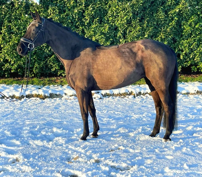 For sale is an elegant Oldenburg mare suitable for advanced dressage competition. Meggie is a 10-year-old mare by Morricone out of Donerbube, standing approximately 16.1 hh. She has competed up to medium level (M) dressage and already performs most of the advanced (S) dressage movements. Meggie impresses with her consistency in training and a very good work ethic. Her friendly and eager-to-learn nature makes her a reliable partner both in training and at competitions. She is very well-behaved in handling and has no vices. Additionally, Meggie also enjoys jumping and easily clears a small course (1.00 m). With further development, this is certainly not her limit, as she shows significantly more talent in free jumping. She is also reliable in the field and calmly completes her rides outdoors. Meggie is compatible with other horses. Naturally, she is farrier- and loading-friendly. An up-to-date veterinary certificate including radiological findings is available.