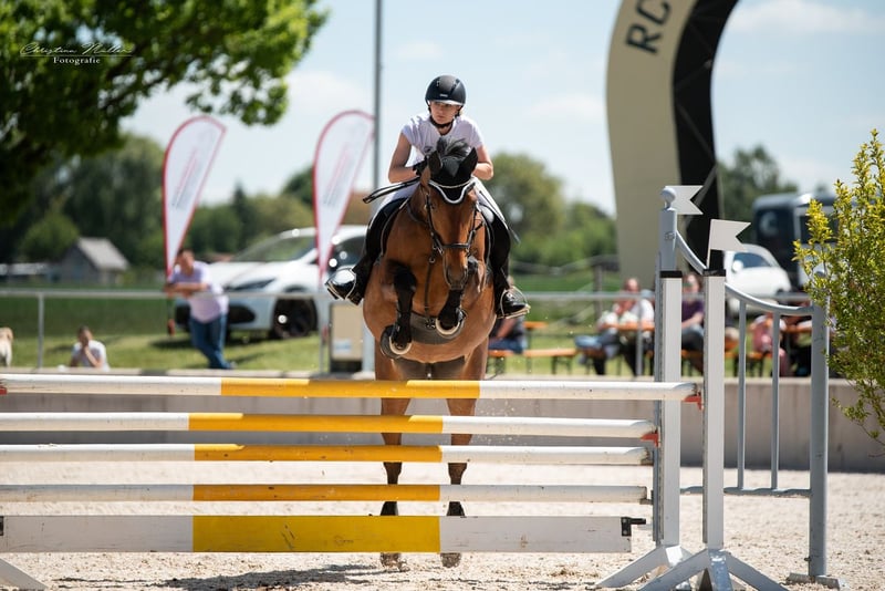With a heavy heart, I am selling my mare La Etna due to personal and professional reasons. La Etna is an incredibly lovable, people-oriented horse with a wonderful character. She impresses not only with her pleasant demeanor in daily handling but also with her great talent and enthusiasm for show jumping. She consistently shows motivation, caution, and a good overview over the jumps. A horse that simply makes riding fun. She is also pleasant to ride in dressage, responds well to aids, and is enjoyable to work with. Therefore, she is suitable not only for show jumping but also has potential for eventing. In the terrain, La Etna is well-behaved and reliable, showing no fear even in challenging situations. She is easy to load and farrier-friendly, overall uncomplicated in handling. Thanks to her excellent character and rideability, she is very suitable for ambitious riders in show jumping, for recreational riding at a high level, or as a school horse for young riders. I wish for La Etna a loving home where she can continue to be supported and showcase her strengths. She will only go to the very best hands. If genuinely interested, I look forward to hearing from you.