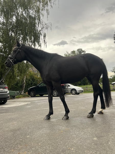 **Sales Advertisement for an Oldenburg Mare** For sale is a beautiful Oldenburg mare, born in 2012. She presents herself in an elegant black coat and has a height of 160 cm. This talented mare is excellently suited for dressage and has achieved success in GA tests with amateur riders. She has a solid basic training, possesses a pleasant character, and always shows a high willingness to learn. Our mare is well-behaved, reliable, and has impeccable behavior both under saddle and on the ground. She is well-socialized and has always integrated harmoniously into the herd. She is looking for a new owner who can provide her with the necessary attention and support to fully develop her potential. If you are interested or have any further questions, please feel free to contact me. Viewings are possible at any time by arrangement. We look forward to your message!