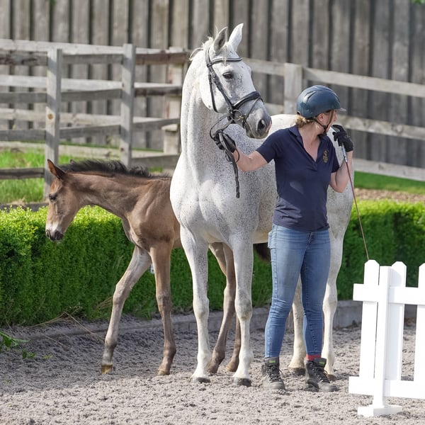 Sensation siempre ha estado a la altura de su nombre como un impresionante modelo de yegua y excelente moverse, descendiente de una yegua de GP especial. Ha producido algunos potros excepcionales, incluido el increíble potro Escanto que tiene a pie y que vamos a retener, por lo que estará disponible tras el destete, pero mientras tanto puede ser cubierta por el semental de su elección, a expensas del comprador para los costos de veterinario y semen. Sensation es un tipo amable pero sensible en su carácter, por lo que no sería adecuada para un gran establo concurrido o para un manejo brusco; se adapta mejor a un establo más pequeño, amable y conocedor que al nuestro, que es grande y ocupado. Muy fácil de manejar en el día a día y totalmente sin complicaciones en un grupo y con su parto, y es una gran madre. Sin embargo, sufre de picazón dulce y es sensible en su piel, por lo que necesita manejo para que esto no se irrite en verano, lo que sería mejor en un establo más pequeño que el que tenemos actualmente para atender mejor sus necesidades. A cambio, producirá algunos descendientes impresionantes (ninguno de los cuales ha heredado picazón de múltiples sementales diferentes).
