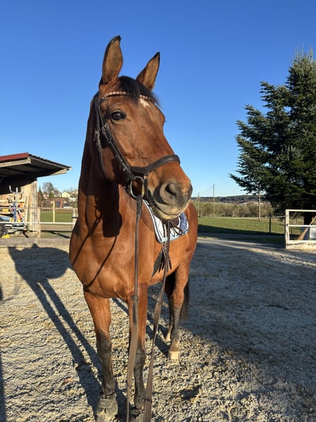 Schon seit einiger Zeit trage ich den Gedanken mit mir herum, für meine 14-jährige Oldenburger Stute ein neues Zuhause zu finden. Es ist kein Notverkauf und nichts, was dringend passieren muss. Ich werde sie nur abgeben, wenn wirklich alles passt und ich ein zu 100 % gutes Gefühl habe. Durch meine Arbeit schaffe ich es aktuell leider nur noch 1–2x pro Woche zu ihr. Für ein Pferd wie sie ist das auf Dauer einfach nicht fair. Sie braucht eine konstante Bezugsperson und regelmäßige Beschäftigung (ca. 4–5x pro Woche), um ausgeglichen und zufrieden zu sein. Wenn es nur nach meinem Herzen gehen würde, bliebe sie bei mir💛 Sie ist eine sensible, feine, ca. 1,69 m große Stute mit drei sehr schönen Grundgangarten, Ausdruck und einem angenehmen Vorwärts. Sie bringt durchaus etwas Go mit, bleibt dabei aber stets händelbar und ehrlich – sie ist kein Pferd, das einen runterbockt oder unfair wird. Trotzdem ist sie kein Anfängerpferd, sondern eher passend für eine erfahrene Person auf A- oder L-Niveau, die keine Turnierambitionen mehr hat, sondern Freude an feiner, gymnastizierender Arbeit und echter Partnerschaft. Im klassischen Reitsport war sie nicht auf Turnieren unterwegs, sie ist jedoch Voltigier- und Longierabzeichen gelaufen und war mit im Voltigiertrainingszeltlager bei den Kindern dabei. Im Umgang ist sie sehr lieb, brav und menschenbezogen. Sie hat PSSM2, ist damit bei angepasster Fütterung sehr gut eingestellt – diese sollte unbedingt beibehalten werden. Aktuell steht sie mit sehr viel Auslauf (tagsüber draußen, nachts Paddockbox; im Sommer nachts draußen und tagsüber drin). Diese Haltungsform wünsche ich mir weiterhin für sie. Platz geht definitiv vor Preis. Wenn du dir vorstellen kannst, ihr Zeit, Ruhe, Beständigkeit und ein liebevolles Zuhause zu schenken, freue ich mich sehr über eine Nachricht. ✨ Um Reittourismus zu vermeiden, nehme ich pro Probereiten 20 €.