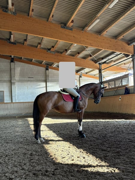 Aufgrund von Zeitmangel suche ich für meine 14-jährige Oldenburger Stute ein neues Zuhause. Sie ist schmiede- und verladefromm. Durch meinen zeitlichen Engpass wurde sie in den letzten Wochen jedoch nicht regelmäßig gearbeitet, weshalb ihre Muskulatur aktuell nicht auf ihrem gewohnten Stand ist. Sie ist eine sensible, feine Stute (ca. 1,69 m) mit drei sehr schönen Grundgangarten und einem angenehmen Vorwärts. Sie bringt Go mit, bleibt dabei aber stets händelbar und ehrlich. Kein Anfängerpferd – ehert passend für eine erfahrene Person, die Freude an feiner Arbeit und echter Partnerschaft hat. Sie eignet sich auch sehr gut für jemanden, der gerne viel Bodenarbeit macht und sich intensiv mit seinem Pferd beschäftigt. Im Umgang ist sie lieb, brav und menschenbezogen. Aktuell steht sie mit viel Auslauf (Paddockbox/Weidehaltung) – diese Haltungsform wünsche ich mir weiterhin. Platz geht definitiv vor Preis. Bei ernsthaftem Interesse freue ich mich über eine Nachricht. Pro Probereiten 20 €.