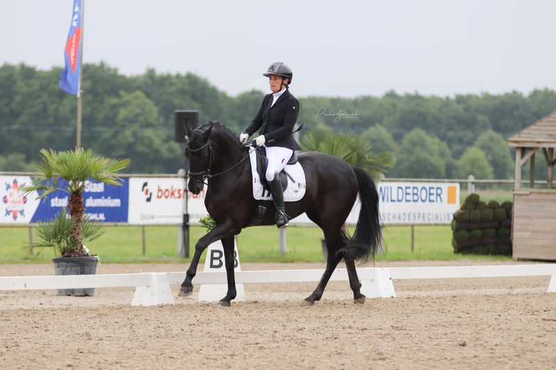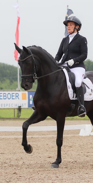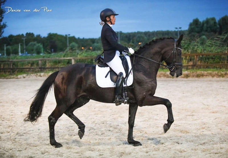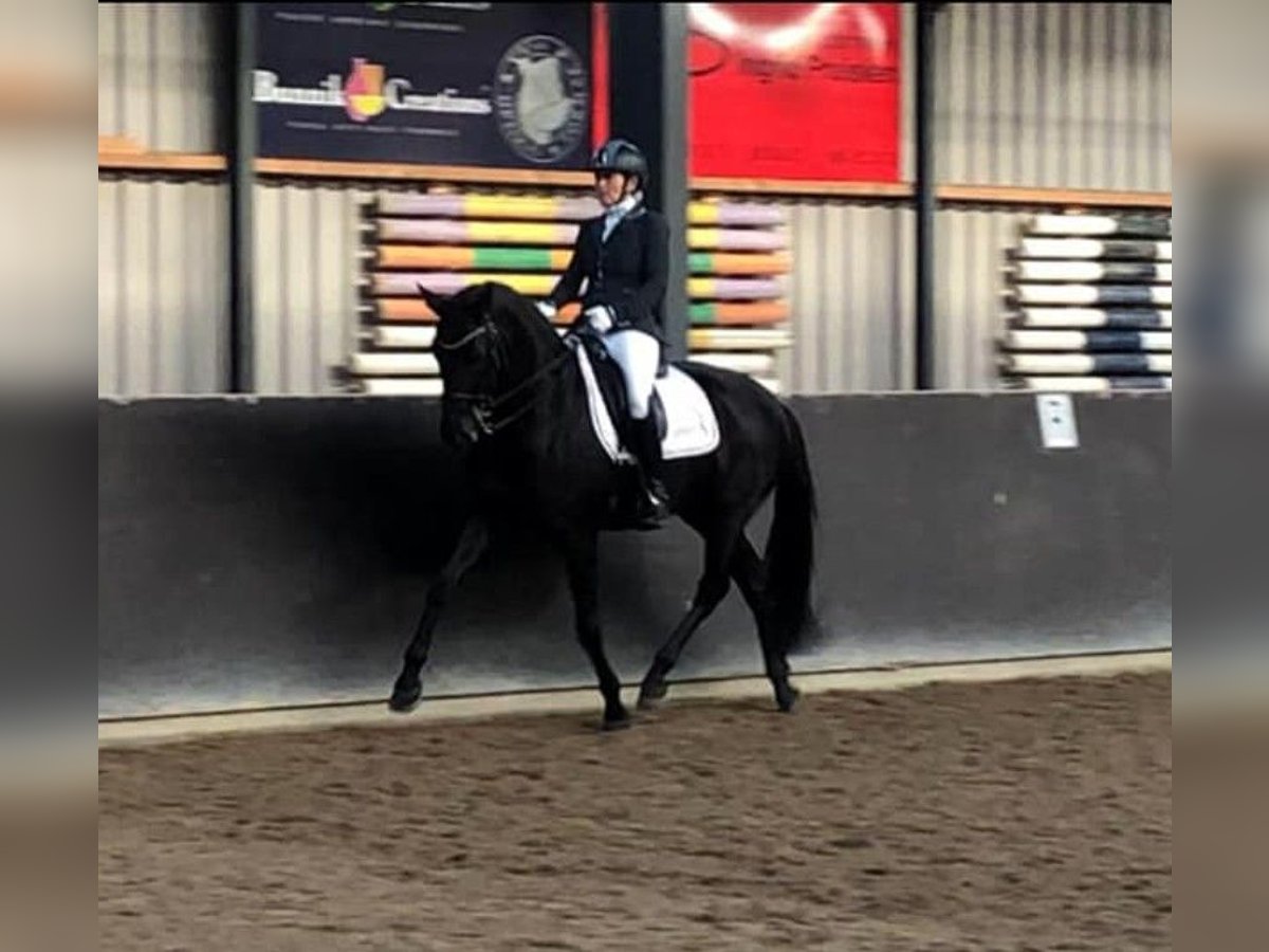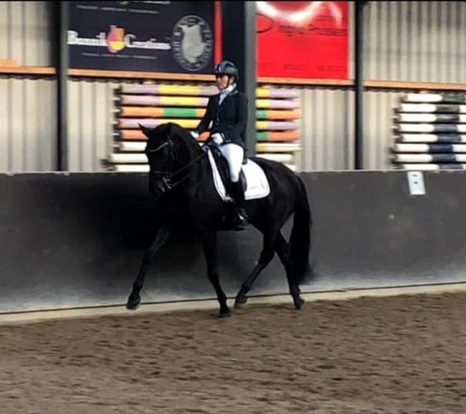 Beautiful black Oldenburg mare, S**-rated and in competition condition. Easy to ride, well-behaved in handling, and full of energy. Also reliable and relaxed in the terrain. She is ready for immediate use in the Children’s class but is equally suitable for an ambitious beginner eager to learn, a girl transitioning from ponies to full-sized horses, or anyone looking for a straightforward ride. She reliably performs flying changes in 2-, 3-, and 4-series and has a very comfortable seat. The mare is only available to a good home and is sold including all accessories.
