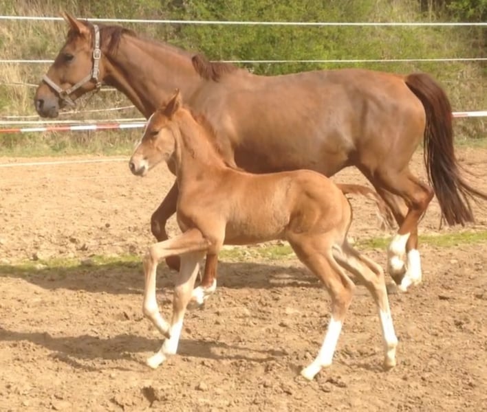 due to her unusual good pedigree (mother Ruthana is a full sister of the stallion Rodgau) and her Rapp gene, Tonja is an interesting offer for breeding; she always became load-bearing. She has passed on her strength of movement and her good character to her descendants (can be visited with us). The fox stallion foal comes from Le Vivaldi, the rapp mare from Grand Galaxy Win. There is also nothing wrong with training her as a riding horse for equestrian sports or leisure. The mare is not ridden, but excellently handled and healthy. Of course, we want a top place. I am happy to answer further questions by phone, but preferably during a personal viewing appointment.