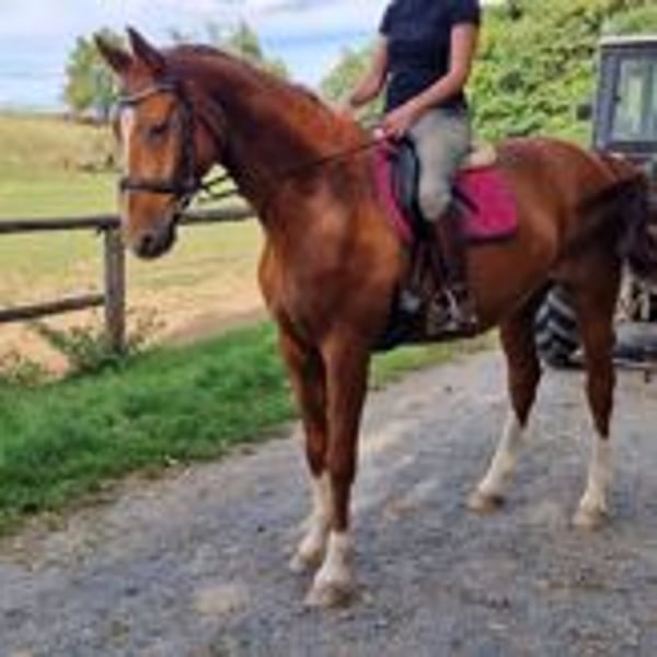 Our 15-year-old chestnut mare Bärbel is looking for a new, loving home where she can enjoy her retirement or go for leisurely rides. 🐴 About Bärbel: Bärbel is a cuddly and people-oriented mare who enjoys human contact very much. She is well-behaved, well-mannered, and always presents herself as friendly and calm. 🌿 Possible uses: She is wonderfully suited for relaxed trail rides or as a companion horse. In the herd, she is uncomplicated and socially compatible. She also enjoys groundwork or walks. 🧡 What we wish for Bärbel: A place with lots of heart, preferably in a loose housing or paddock system with access to pasture and nice companions. Someone who can give her the attention and love she deserves – also gladly as a leisure partner without sporting ambitions. Due to her lineage, she is also interesting for breeding!