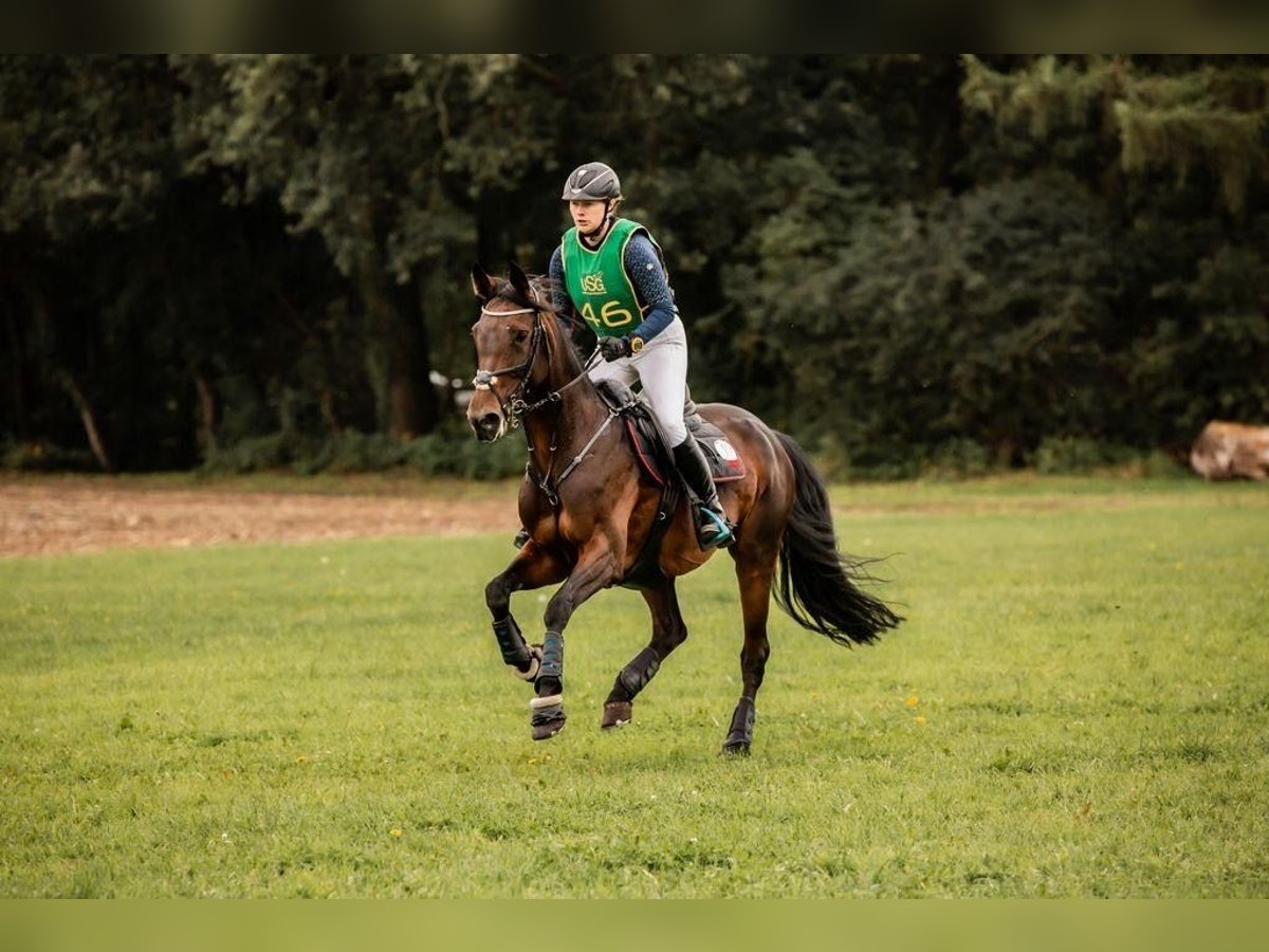 We are selling an Oldenburg mare who has already proven herself several times in competition - in all three disciplines. However, her strength lies in eventing, especially cross-country. She has a successful track record in eventing up to medium (M*) and medium (M**) level. She has achieved consecutive clear rounds in cross-country. In show jumping and dressage, she has been victorious and placed in elementary and advanced classes. This sensitive and willing mare always wants to do everything right. She has developed extremely positively and also offers potential for higher tasks. She has shown her best side at numerous shows. Due to her experience and her successes, this dark bay and very pretty mare is also a recommendation for the demanding youth equestrian sport and should also be very valuable for breeding due to her interesting pedigree and her own performance ability. She is healthy, well trained and ready for new challenges. If you are interested, we look forward to hearing from you to discuss further details and arrange a viewing. Further information, photos and videos can be found on our homepage www.dressurpferde-kroehnert-kneese.de