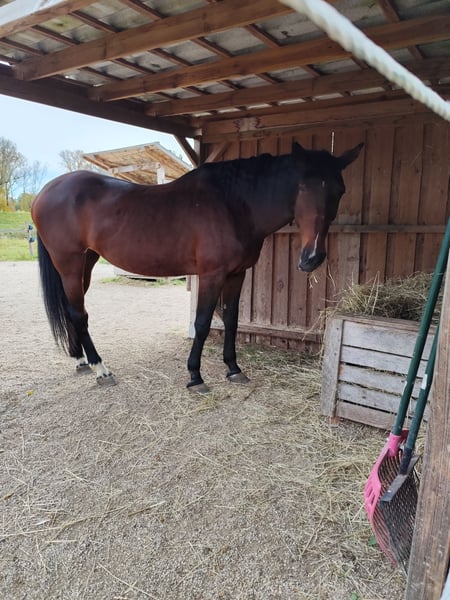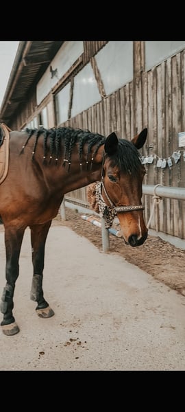 ***Lovely Mare with Protection Contract Only to Proven Best Hands*** ***Beginner Horse / Leisure Horse / Rideable Companion / Breeding Mare / Groundwork / Children's Horse*** First of all: I would only part with her if everything fits perfectly. Otherwise, this dream mare is guaranteed a lifetime place with me. Dealers or dubious inquiries have no chance here! I would only let my loving mare Queenie go to the very best hands with a protection contract and right of first refusal. This is absolutely not a forced sale! For purely personal reasons (unacceptable conditions in the current stable, such as criminals, extreme bullying, harassment, etc.), I have decided to find a new home for my mare and finally close this chapter. If she must move again at her age, it will only be to a place where she will truly be happy – with plenty of heart, (finally) pasture companions, and lots of quality time. Unfortunately, the stables in our area do not meet our expectations (more on that below), and I also sadly lack the time to engage with this very people-oriented and loving mare and mentally stimulate her. Therefore, I am looking for an absolute 5-star home. Queenie comes from a Schockemöhle breeding and stayed there until she was 6 years old. Therefore, she has fantastic papers to show. After that, she actively participated in high-level show jumping up to class M. I took her over when she was 13 years old and have only presented her in dressage up to class A due to her age. She is an absolutely experienced and seasoned mare with a fantastic work ethic. In competition, she has always shown herself to be strong-nerved, reliable, and secure – both in the course and on the flat (I was able to easily pass my riding badge with her). Therefore, she is still ideally suited as a teaching horse for children, teenagers, anxious riders, or re-starters. We have significantly reduced jumping (only poles now) due to her age-related arthrosis, and this should continue! We have placed more emphasis on dressage and groundwork instead. She is easy to ride, responsive, motivated, eager, and always gives her best to her person. She is a ribbon collector due to her rideability and knows movements up to the travers (of course, not in dressage manner – she is and remains a show jumper). Queenie has developed into a reliable horse in her old age, but she also wants to be engaged and handled properly. She should not be active in sports anymore, as she is no longer capable of enduring constant competitions or long trailer rides. I have observed that after extreme exertion, she struggles with an arthrosis flare-up (front right). We have always managed this with breaks and a careful program (diagnosis and x-rays available). However, she is still perfectly suited for leisure riding, occasional clinics, or small home competitions, dressage work, and relaxed rides in the countryside. We have not pursued trail training anymore. We went out more often in the first two years together and then gradually stopped because I am the typical arena and stable rider. She herself was not deeply relaxed outside, but always manageable and well-behaved – especially with a reliable second horse. She also enjoys groundwork. Here she shows herself to be very polite and respectful. We have successfully completed a few trails in hand. I wish for her a leisure rider who not only rides but also enjoys alternative activities. Currently, she is back in the rebuilding phase after an arthrosis flare-up (last competition was in May 2025). After that, she showed typical symptoms again: slight ticking in the front right. The veterinarian and veterinary clinic diagnosed an arthrosis flare-up. Tendons and ligaments are completely intact (x-rays and report available). This has now healed, and she is back in rebuilding training on the lunge. When getting to know her, we must consider the circumstances. Depending on the progress of the rebuilding training, riding may or may not be possible. Her character can best be described as: well-behaved, not mareish at all, but sensitive, people-oriented, cuddly, and sometimes insecure. She is very low in rank and can be easily integrated into any herd. She prefers to avoid trouble and has gotten along with every box or pasture neighbor so far. She loves children and has often participated in holiday programs. I wish for her a lifetime place with a protection contract – where she is appreciated, loved, and supported. She absolutely wants to have a job and not just "stand in the pasture." Herd living with plenty of movement would be ideal. I also wish for her to finally have friends! She is such a lovely and considerate mare who would feel most comfortable in a herd. She seeks the security of the herd and is a total cuddler. Unfortunately, I have never been able to provide her with that (due to "human" problems). Therefore, I wish for either an open stable or herd living with a box for the night. She is a good doer, so sufficient hay (preferably 24/7) is a must. I would like to include extensive and high-quality equipment (saddle, bridle, saddle pads, several blankets, etc.) with her. We can surely come to an agreement on this. Price: Negotiable – the right home is the priority! If you are interested, I look forward to a message and a personal meeting. I am happy to send more photos and videos upon request.
