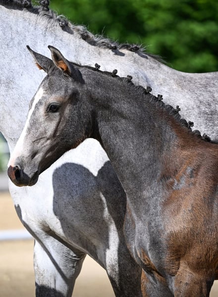 Karla, born on April 7th, 2025, is an adorable grey foal with a curious and lively nature. She already displays a promising conformation at this young age. Karla is developing into a promising young horse that will likely be suitable for show jumping in the future. The foal is being sold on behalf of the owner – please only contact us if you are genuinely interested.