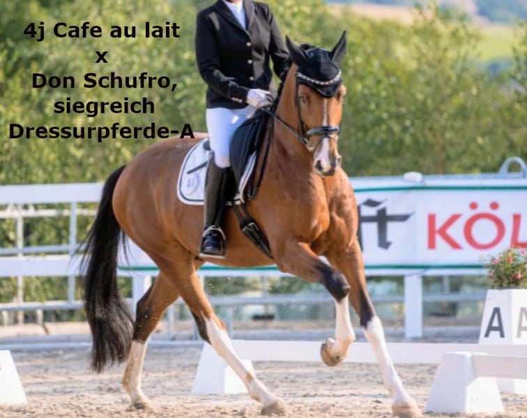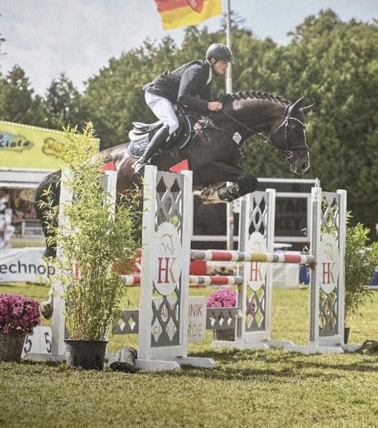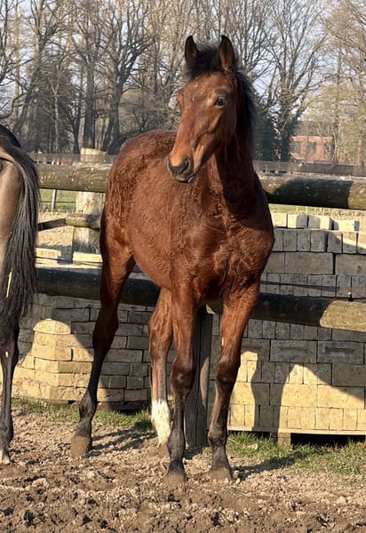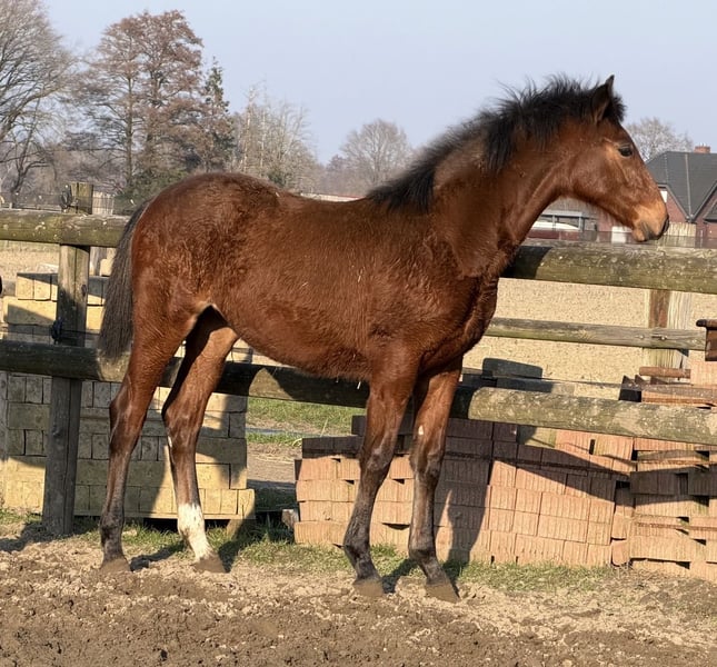 Promising foal-born mare from a successful pairing! Full brother licensed and performance tested with scores up to 9.0 for rideability and willingness to perform. This mare will also be clearly double-anchored in her pedigree and suitable for both amateurs and professionals. Her sire, Cafe au Lait, a stallion champion at his licensing, winner of the performance test, and finalist at the Bundeschampionate, was successful in advanced classes himself and has established a reputation in recent years as a top sire with outstanding progeny. Thus, Cafe's Casimir (Cafe au Lait x Calido x Grannus), celebrated as the top-priced lot at the Oldenburg Elite Auction, has already achieved multiple wins in S-dressage and international success in Intermediaire I at a young age. Kasselmann's Cafe's Caletta (Cafe au Lait x Calato) is also placed in S-Dressage and victorious at international Grand Prix level. Cafe's Matts (Cafe au Lait x Don Frederico) was the second-highest priced dressage horse at the Oldenburg Summer Mixed Sales. Additional young horses from spring-bred dam lines have been repeatedly placed in dressage competitions from A to M class and are notably expressive in movement and mentally sharp. There is no doubt that Cafe au Lait offspring excel in show jumping up to the advanced level, as exemplified by our own breeding: - Cafe's Champus: licensed, vice-world champion of young horses - Cafe Junior: licensed, successful internationally in Saudi Arabia - Cafe's Columbo: licensed and successful in sport in France - Cafe's Don Rubin: licensed, bronze medalist at the Dobrocker Deister Championship at age 4 as the youngest horse, now 5 years old and multiple winner in jumping classes L and M, qualified for the Bundeschampionate - Cafe's Deconi: licensed, just 3 years old and completed a 50-day performance test with scores up to 9.0! Stationed with Paul Schockemöhle, Cafe au Lait has already sired numerous internationally successful show jumpers, including "Royce," victorious at the FEI CSI5* $500,000 Rolex Grand Prix Wellington. Cafe au Lait himself was a Bundeschampionat finalist under Philipp Weishaupt and has competed successfully up to S*** jumping, while also possessing three above-average GGA and dressage training at S level. Our foals receive daily mineral feed and foal starter, regular EQUISTRO Haemolytan and Ipaligo Foal supplements. Deworming and farrier visits are, of course, standard. The dam lines are also fed special broodmare feed, daily forage and linseed oil throughout pregnancy, plus hay ad libitum. As a result, our offspring are always in excellent health. Further foals and young horses from our own breeding are available upon request. We also regularly have some pregnant broodmares for sale. Video inquiries, etc., exclusively via WhatsApp in advance!