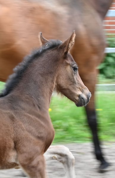 Pouliche puissante avec de très bonnes GGA malgré une ascendance de saut. Lieu Emstek ! Informations sur la lignée maternelle : Oldenburger Stamm 189 mère classée en S et jument élite OS. Grand-mère jument élite OL. Frères et sœurs de la mère couronnés de succès jusqu'en GP et S internationaux.