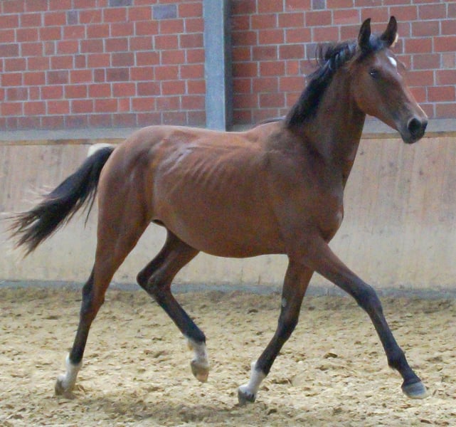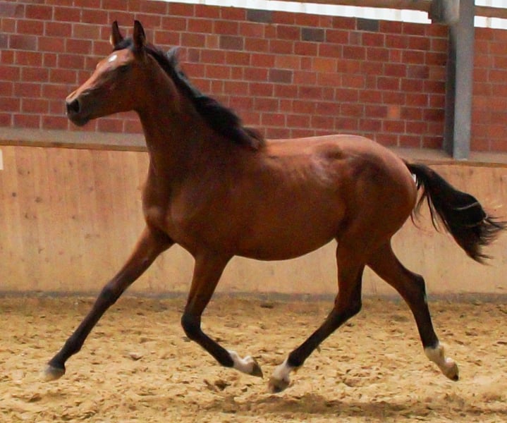 Rasse: Oldenburger Abstammung: Damian VBL x Santo Domingo von San Amour Geschlecht: Stute Alter: geb. 20.03.2024 Zum Verkauf steht diese vielversprechende Dressur Nachwuchs Stute Sie ist mit drei schwungvollen, elastischen GGA ausgestattet , ist brav im Umgang und beherrscht das Fohlen ABC Alles weitere unter der Nummer 0176 6249557