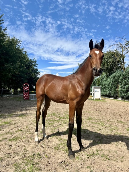 A daughter of Bon Esprit who leaves nothing to be desired. Good, expansive gaits, an active hind leg, and a character of gold! A wonderful yearling filly from a small, loving hobby breeding. She is very eager to learn and is an absolute treasure to handle. The mother is a performance mare according to FN standards and was herself successful up to M** level.