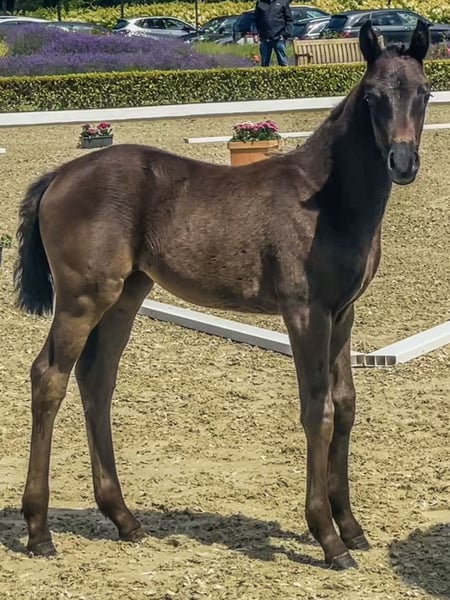 Royal Esprit ist bezauberndes, bildschönes, sehr liebes und anhängliches schwarzen Prämien Stutfohlen von Bon Esprit/ Dancier/ Totilas/ Rohdiamant/ Pikbube. Sie hat drei sehr gute Grundgangarten. Sportlich und züchterisch hochinteressant!! Alles was im Dressursport Rang und Namen hatte und heute hat steht in ihrem Pedigree. Mütterlicherseits kommt sie aus dem Rotsponstamm der Noreja. Seit jeher ein Garant für Rittigkeit. Ihre Grossmutter ist die Schwester der Mutter vom helgstrandschen Superhengst So Perfect. Alle Erfolgspferde dieses Stammes aufzuzählen würde den Rahmen sprengen. Vater, Siegerhengst Bon Esprit (Bon Courage/Sezuan) ist einfach eine Klasse für sich mit herausragenden Perspektiven. Royal Esprit kann zur Aufzucht bei uns bleiben. Bei Interesse gern mehr Informationen und Video per whats App und mündlich. 0175 1567093.