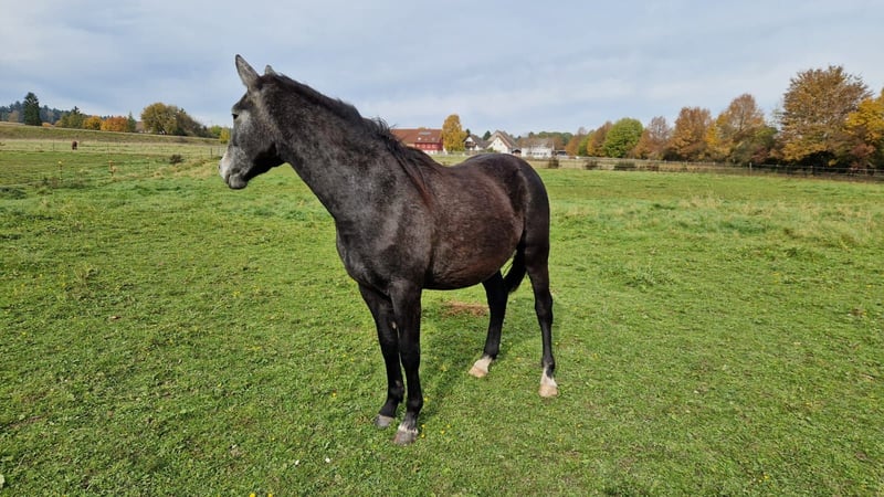 Liebevolle Schimmel Stute zu verkaufen Die 3 jährige Pony Mix Stute hat einen liebevollen Charakter und wächst in der gemischten Herde auf. Aktuell hat sie ein Stockmaß von 1,45. Ideal für den Freizeitbereich / Dressur Halfter führig und brav beim Ausschneiden. In der Herde zeigt sie sich Menschenbezogen und dem Menschen freundliche zugewandt. Der Vater - Deutsches Reitpony - Hilkens Dance Forever - war erfolgreich in der Dressur bis L platziert. Mutter Vater Dark Dressed Man Oldenbruger - erfolgreich in der Dressur bis L platziert Bei Interesse weitere Infos per PN