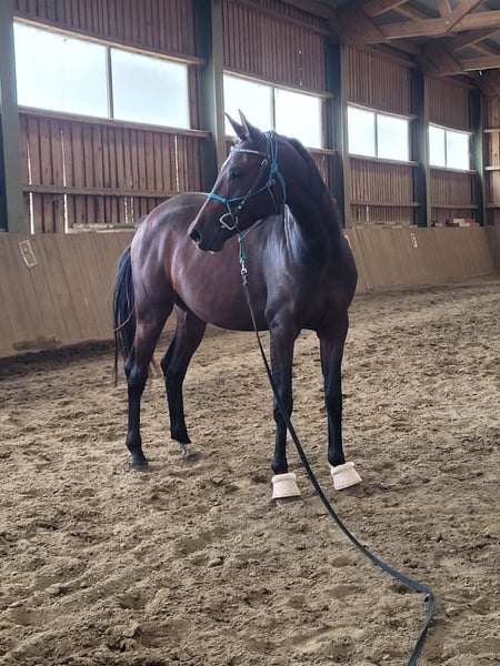 Kto nie zna tego? ... Ogłoszenia, w których koń jest oferowany z ogromnym potencjałem – szerokie kroki i charakter z złota – a potem okazuje się, że jest coś zupełnie innego? Oto szczera oferta. Bez koloryzowania i bez zbędnych ozdobników. Mimo wszystko, to uczciwa klacz z potencjałem i dobrym sercem. Urodzona w marcu 2022 roku, ta brązowa klacz Oldenburska, pochodząca od Vivaldos x Belissimo M x Dimaggio. Obecnie ma około 163 cm wzrostu i nadal rośnie (w tyłach jest już wyraźnie wyższa). Bardzo przyjazna w codziennym kontakcie. Bez problemu można ją przywiązać, czyścić, pokazać kowalowi, odrobaczyć itp. – wszystko, czego koń musi umieć. Klacz jest lonżowana i zna siodło oraz ogłowie. Nie jest jeszcze pod siodłem. Dlaczego? Bo na razie jeszcze za bardzo się ekscytuje w niektórych sytuacjach i potrzebuje trochę czasu, aby się uspokoić. Ta młoda dama szuka kogoś, kto nawiąże z nią relację i będzie chciał dużo pracować z ziemi. Reaguje na najdrobniejsze sygnały. Gdy nie ufa komuś, jest raczej powściągliwa i sceptyczna, ale nigdy nie stanie się wobec człowieka złośliwa. Dostępne są zdjęcia RTG, obejmujące szyję i grzbiet. Występuje drobny stan zapalny, ale nikt nie jest idealny. Chcesz poznać więcej szczegółów? Napisz śmiało. Proszę, aby nie wysyłać wiadomości z ciekawości – kontaktować się tylko w przypadku poważnego zainteresowania. Obecnie klacz je na gołej kopycie i dobrze daje się załadować do transportu.