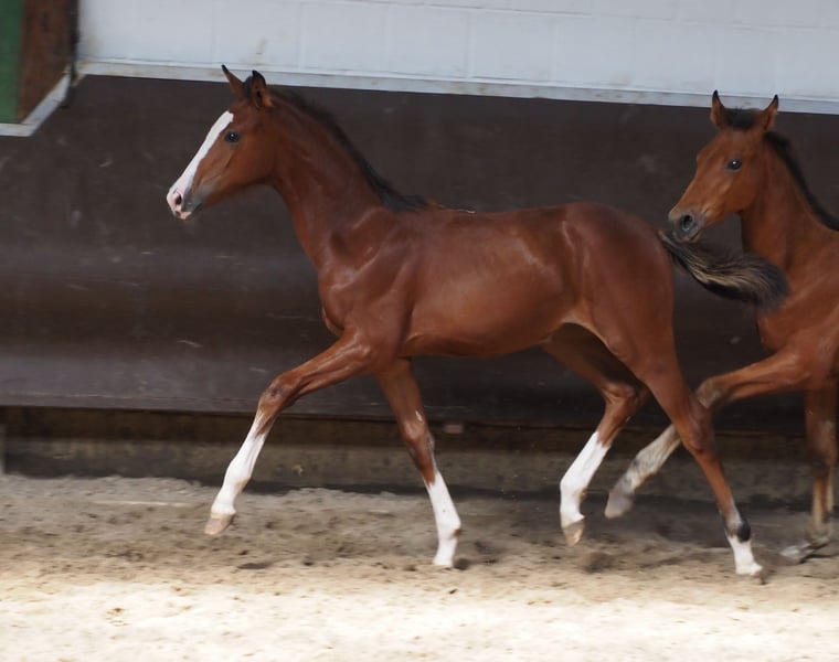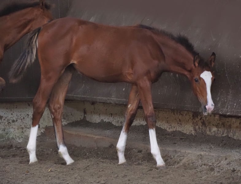 Magnifique poulain coloré, doublement approuvé, issu d'une union éprouvée ! Sa mère a elle-même réussi jusqu'à S* en amateur. Il est descendant de notre champion de keur "Café au Lait", qui se distingue depuis un certain temps par sa progéniture exceptionnellement performante en dressage et saut d'obstacles (visible sur place). L’un des rares étalons à pouvoir présenter de nombreux descendants performants dans les deux disciplines jusqu’au niveau Grand Prix. Ainsi, "Cafe's Casimir" (Café au Lait x Calido x Grannus), vendu aux enchères comme le meilleur lot de la vente d’élite d’Oldenbourg, a déjà été multiple vainqueur en dressage L et M dès son jeune âge, a remporté ses premières S** à 7 ans et est aujourd’hui gagnant en S***. La jument Kasselmann’s Cafe’s Caletta (Café au Lait x Calato) a déjà obtenu des classements en dressage S et a remporté des épreuves de Grand Prix internationales. Cafe’s Matts a été le deuxième cheval de dressage le plus cher lors des Oldenburger Summer Mixed Sales. D’autres jeunes chevaux issus de mères orientées saut d’obstacles ont déjà été placés plusieurs fois en épreuves de dressage A et L, et se distinguent par leur mouvement remarquable et leur vivacité mentale. Il ne fait aucun doute que la descendance de Café au Lait impressionne également en saut d’obstacles jusqu’au niveau Grand Prix. Ainsi, le reproducteur agréé Cafe’s Champus, monté par René Tebbel, a été vice-champion du monde des jeunes chevaux et est également utilisé chez nous pour la reproduction. Aussi agréé et issus de notre élevage : Cafe Junior (Café au Lait x Silvio I), placé en saut d’obstacles jusqu’au niveau S*. Café au Lait lui-même a été finaliste du championnat fédéral sous Philipp Weishaupt, a réussi en saut d’obstacles jusqu’au niveau S***, et possède également trois GGA spectaculaires, tout en étant formé en dressage au niveau S. Stationné chez Paul Schockemöhle, il a déjà engendré plusieurs chevaux de saut d’obstacles performants à l’international, notamment "Royce", vainqueur du FEI CSI5* Rolex Grand Prix Wellington. Nos poulains reçoivent quotidiennement des minéraux et un starter pour poulains, ainsi que régulièrement EQUISTRO Haemolytan et Ipaligo Foal. Les vermifuges et la ferrure sont bien entendu également assurés. Les mères gestantes bénéficient d’une alimentation spécifique, de nourriture liquide, d’huile de lin et de foin à volonté tout au long de la gestation. Ainsi, nos juments de reproduction et leur progéniture sont toujours en excellente santé ! D’autres jeunes chevaux disponibles sur demande, une partie est également visible dans nos autres annonces. Possibilité de reprise d’une jument de reproduction adaptée. Les vidéos et demandes de contact se font exclusivement via WhatsApp. Cafe’s Quibelle dispose déjà de très bonnes radiographies et est actuellement en longe et en dressage.