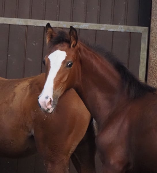 Beautiful colorful double-predisposed filly from proven mating! Mother herself has been successful in amateur sports until S*. Descended from our licensing winner "Cafe au lait", who has been attracting attention for quite some time with his incredibly successful offspring in dressage and show jumping (can also be visited on site). One of the few sires, who can boast several successful offspring in both disciplines up to the advanced class! This is how "Cafe's Casimir" (Cafe au lait x Calido x Grannus) became the celebrated top prize of the Oldenburg Elite Auction, was already a serial winner in dressage horses L and M at a young age, was a serial winner again in his first S dressage at the age of 7 and has now won his first S**! Mare Kasselmanns Cafe's Caletta (Cafe au lait x Calato) has already placed S-dressage and won the International Grand Prix. Cafe's Matts became the second most expensive dressage horse of the Oldenburg Summer Mixed Sales. Other young horses from jumping dam mares have already placed several times in dressage horse tests A and L and are remarkably strong in movement and clear as head. There is no question that the café au lait is convincing offspring in show jumping up to the advanced class. For example, the licensed Cafe's Champus became Vice World Champion of Young Horses under Rene Tebbel and is also in stud use with us. Also licensed and from our breeding: Cafe Junior (Cafe au lait x Silvio I), placed internationally S*-jumping. Cafe au lait himself was a finalist in the National Championships under Philipp Weishaupt and has been successful up to S*** jumping, but has also been equipped with three spectacular GGA and has been trained dressage at S level. Stationed with Paul Schockemöhle, he has already fathered several internationally successful show jumpers, including "Royce", winner of the FEI CSI5* $500,000 Rolex Grand Prix Wellington. Our foals receive daily mineral feed and foal starters, regular EQUISTRO Haemolytan and Ipaligo Foal, worming and blacksmithing are of course also a matter of course. The mothers also receive special mare feed, juice feed, linseed oil and hay ad libitum throughout the pregnancy. So our broodmares and their offspring are always in the best state of health! Other young horses on request, some of them can be found under the other advertisements. Trade-in of suitable broodmare possible. Cafe's Quibelle is already set off and can be visited daily. Video inquiries etc. are only possible via WhatsApp.
