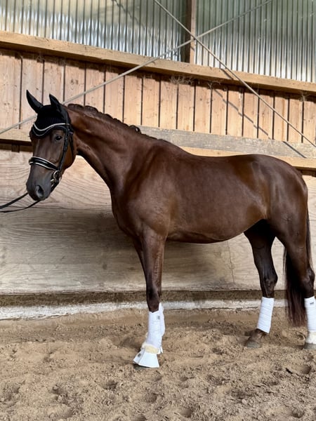 🥕 3-year-old mare by Total Hope 🥕 In the video, she is the fourth horse under the rider! Clear-headed Well-behaved Knows farrier work & trailer loading Expected height over 173 cm Good health certificate (TÜV) With AKU (equine health certificate) ✨ Total Hope x Sieger Hit x Don Gregory x Rohdiamant ✨ 🌟 Grandmother Maradita is the full sister of the recently deceased Maradonna (mother of Fürstenball) Also of interest for breeding due to her pedigree 📍 Location between Tübingen and Reutlingen Price negotiable for a good home