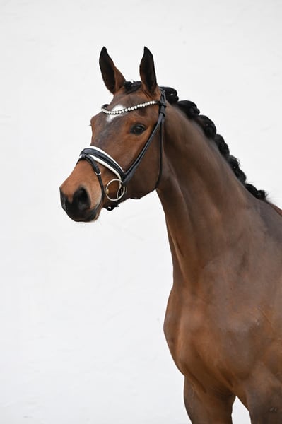 Ausdrucksstarke Stute von VaPensiero x Fidertanz aus 2023. Frisch unter dem Sattel verspricht sie mal ein echter Hingucker fürs große Viereck zu werden. Ihr Trab lässt nicht viele Wünsche offen, immer schwungvoll und aktiv aus der Hinterhand. Schritt raumgreifenden und mit viel Übertriett. Die generelle Selbsthaltung und auch Balance im Galopp die die 175cm große Stute an den Tag legt ist beeindruckend, und macht sie trotz ihrer Größe auch für zierlichere Reiter leicht handlebar. Auch wenn sie gerade erst angeritten ist Zeit sie sich schon temperamentsüberlegen und brav in der täglichen Arbeit mit sehr guter Rittigkeit. Ein Pferd dessen Ausbildung sicher sehr viel Spaß macht. Guter Tüv vorhanden. Vb 24500🥕 Bitte telefonisch melden unter 0179 7002982, Standort 97285 Röttingen