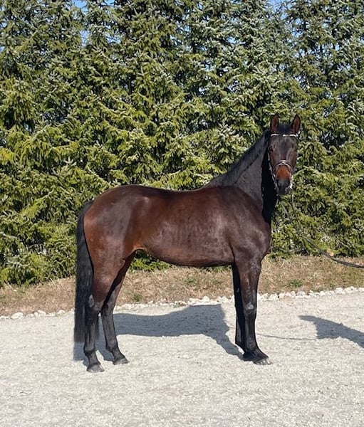 Unsere 4 jährige "Lovely Edoste" ist auf der Suche nach einem neuen Zuhause. Für diese kleine Maus begann vor 3 Monaten der Ernst des Lebens. Sie wurde sorgsam und schonend an die Ausrüstung gewöhnt und anlongiert. Seid ein paar Wochen trägt sie den Reiter und ist jetzt angeritten. Diese Stute erfreut uns jeden Tag mit Ihrem freundlichen Wesen und Ihrer immer positiven Arbeitseinstellung. Sie ist immer artig und motiviert. Sie ist vollständig entwurmt, geimpft und regelmäßig beim Hufschmied. Bei uns lebt sie in der Stutenherde und hat Nachts Ihre eigene Box. Sie ist sehr sozial und verträglich. Röntgenbilder o.b.B. liegen vor. Krank war sie bei uns noch nie. Tierarzt kennt sie nur zum Impfen. Wir sehen Ihren Platz, aufgrund Ihrer Größe, bei einer Familie, Dame oder Jugendlichen. Aufgrund Ihrer Abstammung auch ein Juwel für die Dressurpferde Zucht. Für ein kennenlernen mit ggf. Probereiten wird eine Gebühr in Höhe von 25 Euro sofort in bar fällig.