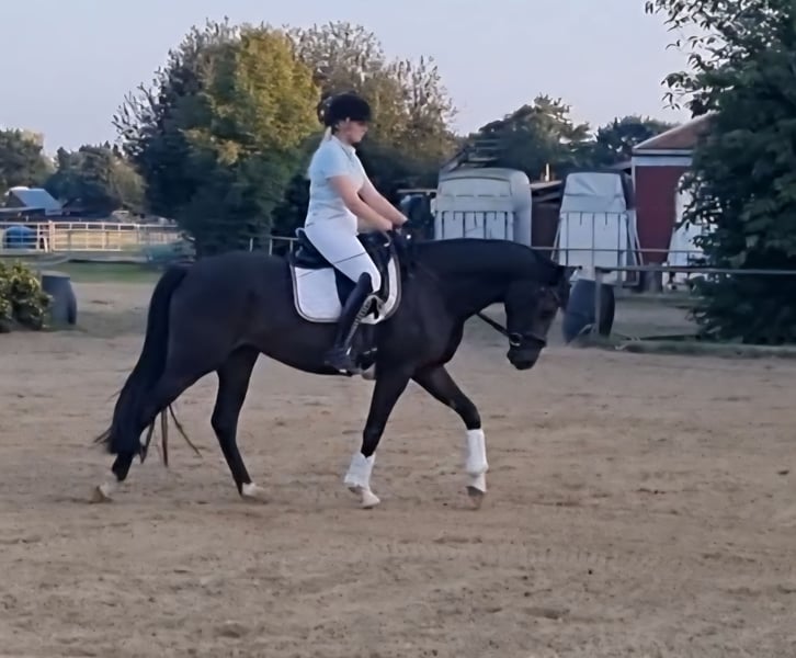 Wunderschöne Oldenburger Stute zu verkaufen Zum Verkauf steht eine talentierte Oldenburger Stute, geboren im Jahr 2021. Sie präsentiert sich in einem eleganten braunen Kleid und hat ein Stockmaß von 163 cm. Diese Stute zeigt großes Potenzial im Dressursport und ist sowohl für erfahrene Reiter als auch für ambitionierte Freizeitreiter geeignet. Ihr freundliches Wesen und ihre Lernbereitschaft machen sie zu einer idealen Partnerin. Mit ihrer positiven Einstellung und ihrem ansprechenden Bewegungsablauf wird sie sicherlich schnell das Herz ihres neuen Besitzers erobern. Sie steht bei uns im Sommer komplett draußen auf der Weide und im Winter nachts in der Box. Video auf Anfrage! Außerdem auch sehr interessant für die Zucht aufgrund erfolgreichem Mutterstamm. Die Schwester 7 j. ist auf dem Weg Richtung S Dr., die Mutter selbst war im Bundeskader, Deutsche Meisterschaft etc.. Wir wünschen uns ein schönes Zuhause wo sie im Mittelpunkt steht und noch weiterhin viel lernen darf.