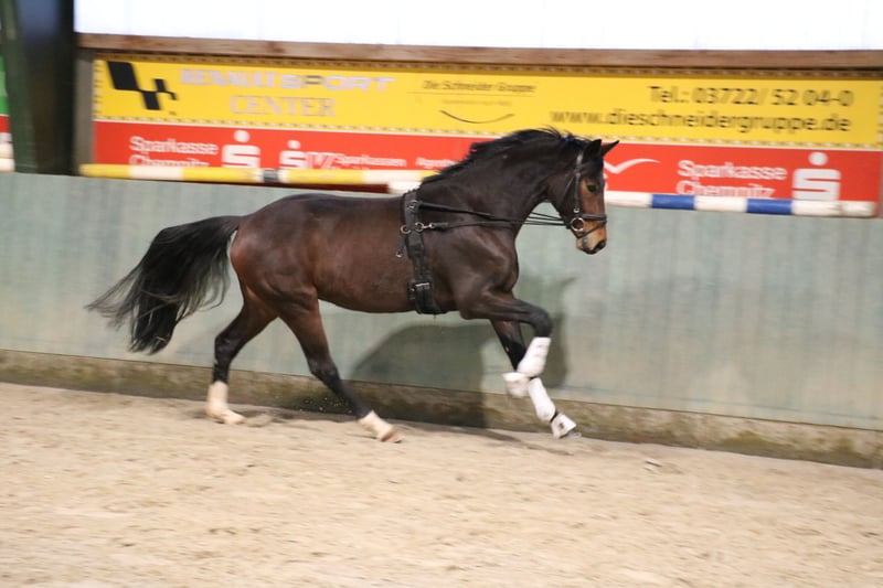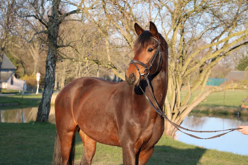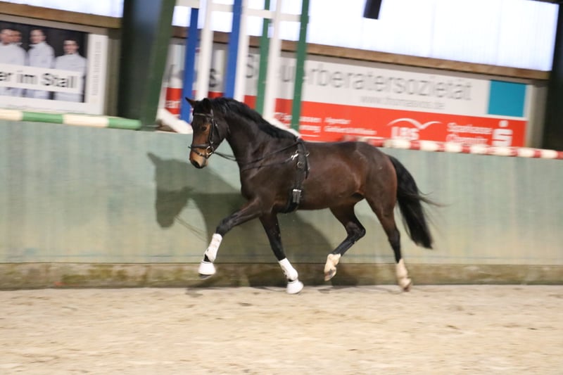 Te koop vanwege fokkerijverplichtingen een prachtige 4-jarige dressuurmerrie. Ze heeft als veulen de Oldenburg Elite Award ontvangen, is daarna opgegroeid in een kudde en zeer goed gesocialiseerd. Ze is natuurlijk bekend met trailer en hoefsmid. Ze beschikt over drie echt goede basisgangen. Vooral haar zeer actieve achterbeen is opvallend, zodat de nieuwe eigenaar veel plezier kan beleven aan haar verdere opleiding. Ze heeft een "mensvriendelijk" karakter, is zeer attent en leergierig. Momenteel wordt ze net aangezet (stand 04/26). Uit de directe moederlijn (overgrootmoeder) komen meerdere Grand Prix-winnaars en Burgpokal-finalisten! De moeder is momenteel 9 jaar en succesvol in de M-dressuur, op weg naar S. Al met al een geweldig jong paard zonder echte zwakke punten.