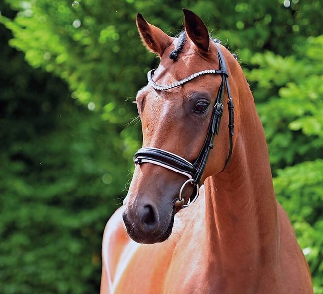 Very interesting here is Vicci, a highly rideable horse that will make any rider happy. The dam, St. Fleur, is a sister of the Grand Prix successful The Best/Andrea Giovannini, Italy. Delia's sister, Romina, produced the Grand Prix winner Denzello/Lisa M. Wilcox, USA. The horse is being sold without insurance coverage, contrary to the auction conditions. Please inquire with the auction veterinarians.