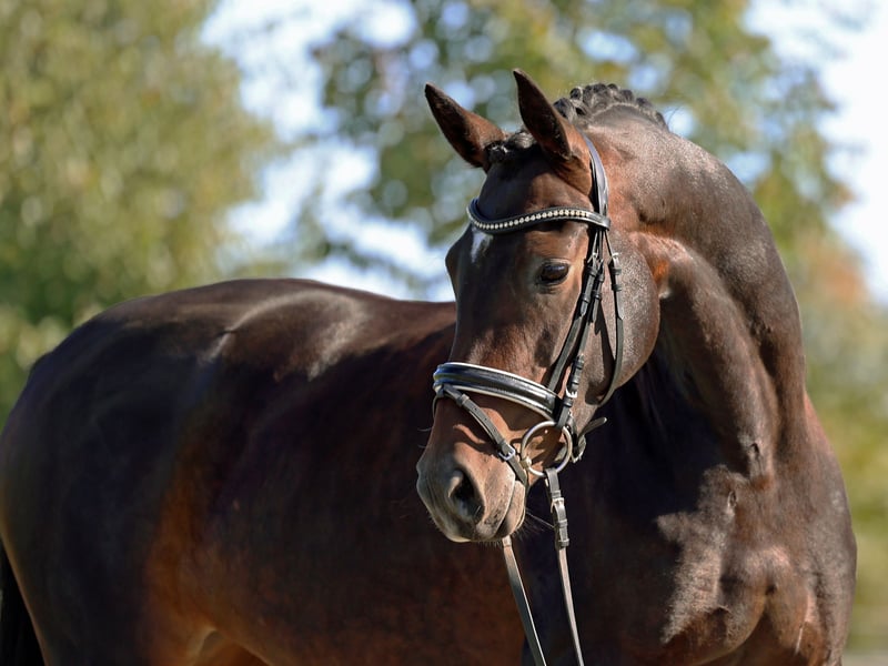 Directly from the breeder and already X-rayed: Raven is hard to surpass in elegance. She has already captured numerous hearts here. While she is simply beautiful in the pasture, under the rider she transforms from a still quite green little lady into an impressive dancer more and more. Furthermore, Raven offers a lot of riding comfort: Her expressive basic gaits engage the rider and are very easy to sit, she is butter-soft in the hand, cool, and works concentrated - even under our young test rider (A-level) she does this as if it were second nature. Raven comes from the first crop of the premium stallion Raven, who is noted for his incredibly strong-moving offspring and already has 5 licensed sons. He is a son of Revolution, who ranks 11th among the young horse sires in Germany with a breeding value of 156. Raven's mother is a daughter of the double Olympian Destano, who has an excellent breeding value (HEK) of 142. Good X-ray images are available. You can find our agricultural operation just 30 minutes from Berlin. Here, we raise high-quality foals in a species-appropriate manner in herds, on extensive pastures with plenty of space and year-round movement. With time and care, we accompany them on their way to becoming reliable riding horses. If you would like to meet Raven and our other young horses or learn more about them, we look forward to your call at 03301 577 2585! *** The journey is worth it! For more young horses, see below in our other listings. ***