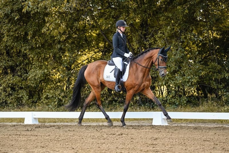 "Lady Rose" ist eine 4-jährige Oldenburger Stute mit einem Stockmaß von 1,68 m die durch ihre verschmuste und liebevolle Art begeistert. Sie ist sehr lernwillig, menschenbezogen und zeigt sich im täglichen Umgang absolut unkompliziert. Rosi ist mit 3 grundsoliden GGA ausgestattet und macht auch bereits unter dem Reiter einen guten Sprung. Im Gelände zeigt Sie sich ebenfalls sehr unerschrocken. Weitere Infos gerne telefonisch, Video auf Anfrage.