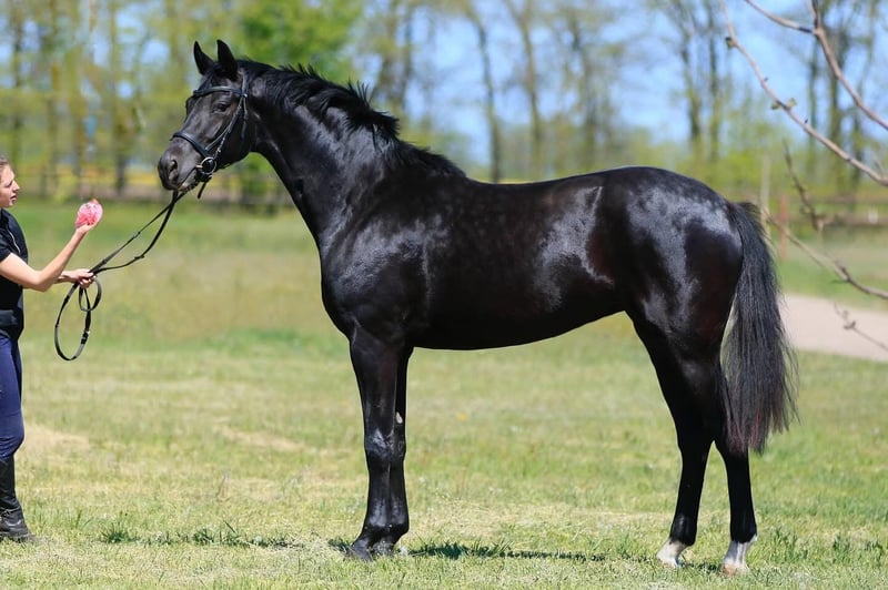 Beretta ST 2022 • Stute • Oldenburg • Dressurpferd Eine außergewöhnliche schwarze Perle aus der Kollektion 2022 von Status-Victoria DBS: Bon Coeur — Fürstenball — Tarbagan. Beretta ST vereint Eleganz, Adel und athletische Kraft. Sie beeindruckt mit perfekter Konformation, Elastizität, Rhythmus, Balance und Leichtigkeit in der Bewegung. Ihr Charakter verbindet ruhige Weisheit mit einem inneren Feuer, das bereit ist, im Sport zu glänzen. Ein zukünftiger Star und unersetzlicher Partner für den ehrgeizigen Reiter! Preis: 20.000 € Export möglich.