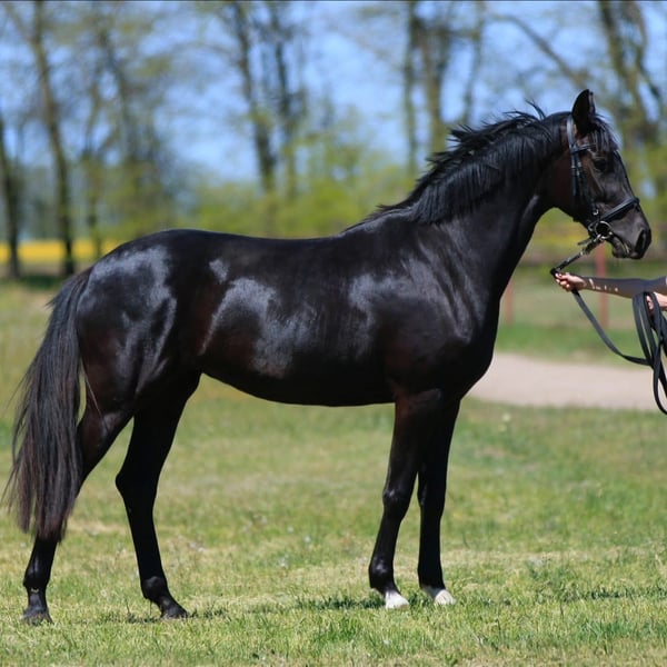 Beretta ST 2022 • Mare • Oldenburg • Dressage prospect An exceptional black pearl from the 2022 collection of Status-Victoria DBS: Bon Coeur — Fürstenball — Tarbagan. Beretta ST combines elegance, nobility, and athletic power. She impresses with perfect conformation, elasticity, rhythm, balance, and lightness in movement. Her character blends calm wisdom with an inner fire ready to shine in sport. A future star and irreplaceable partner for the ambitious rider! Price: €20,000 Export possible.
