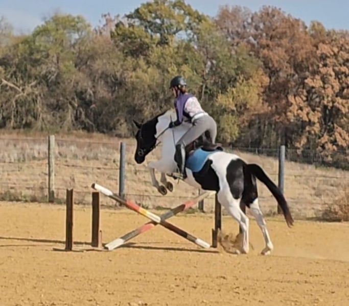 🎄𝐓𝐇𝐄 𝑯𝒐𝒍𝒊𝒅𝒂𝒚 𝐂𝐋𝐀𝐒𝐒𝐈𝐂🎄 Happening now thru MONDAY | DECEMBER 15th - Available EXCLUSIVELY on HorseBid's website! For more details and to register visit: www.Horsebid.com CONSIGNOR CONTACT: Pleasant Valley Equine 270-635-5572 LOCATION: Robards, KY BREED: German Oldenburg Verband REGISTERED: Yes REGISTERED NAME: Holly Rock CHF COLOR: Black & White Paint HEIGHT: 15.2 AGE: 4 GENDER: Mare A change in life circumstances and divorce has led to the sale of Holly Rock CHF (Rock Solid x FYF Hap Hazard), a talented and versatile 4-year-old mare. Having been started in her training, she has already participated in several fox hunting events, showcasing her exceptional walk, canter, and forward-thinking nature. With her athletic ability and versatility, Holly is well-suited for multiple equestrian disciplines, including Hunters and Eventing. She is registered with the German Oldenburg Verband and is designated as a Skewbald bay, as the organization does not recognize Paint colors. Her sire, Rock Solid (Rosenthal x El St. Parabola), boasts a distinguished dressage career, competing at the FEI levels, and hails from the renowned Abita/Elfi Hanoverian mare line. He has achieved numerous wins and titles, including a successful 70-day stallion test. His offspring are excelling in various equestrian pursuits, with some achieving Grand Prix levels and earning year-end titles. Holly has a great disposition and willingness to please that makes training and riding a wonderful experience. She has been through our desensitizing program. Holly enjoys playing with the tarps, balls, and pool noodles. She handles gunfire, bull whips, traffic, and ATVs. She is great out in the woods and has been trail ridden all over Kentucky and Tennessee. Holly is a blast in the arena. She is soft and supple in the mouth and gives laterally and vertically with minimal pressure. She gets her leads and even has a flying lead change. Holly started going over fences and seems to love it. She would make a great Eventer and Fox-hunter. If you're looking for your next Dressage mount, Holly will succeed in that discipline too. She has already started on many dressage moves. The sky's the limit with her. Holly is sold 100% sound with no vices. She is up to date on all vaccines & Coggins. She is currently barefoot & handled rocky terrain with no issues. Holly is easy to load, clip, bathe & stands well for saddling and bathing. Call today to set an appointment to meet Holly: 270-635-5572