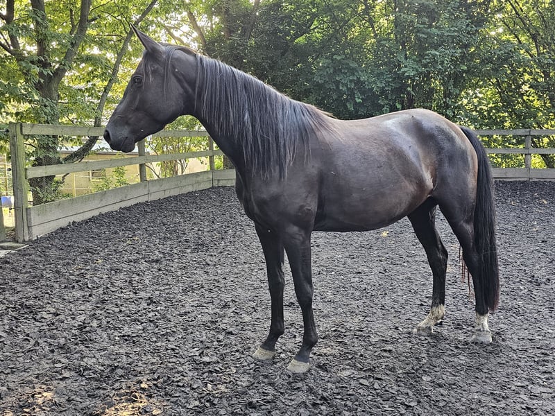 The mare was bred by us. She has grown up in a herd environment on large pastures and has learned the basics of being a foal. Now she is being gently introduced to her upcoming training as a riding horse, during which she shows herself to be friendly and very cooperative. A mare that wants to please. The price will increase with further training.