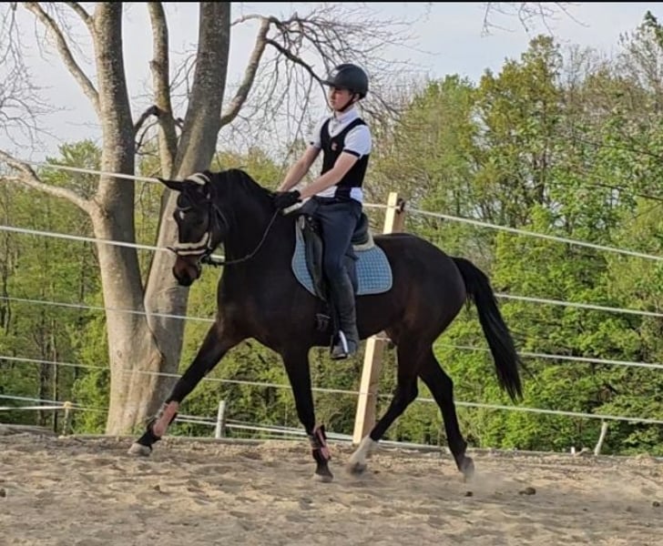 Bildschöne Tochter des For Romance. Leichtfüssige Bewegungen. Super brav beim Anreiten und im Umgang. Sie wird meist nur am Platz geritten da wir keine Halle haben. Sie steht noch im Offenstall und hat noch keine Eisen. Direkt vom Züchter wegen Aufgabe der Dressurpferdezucht.