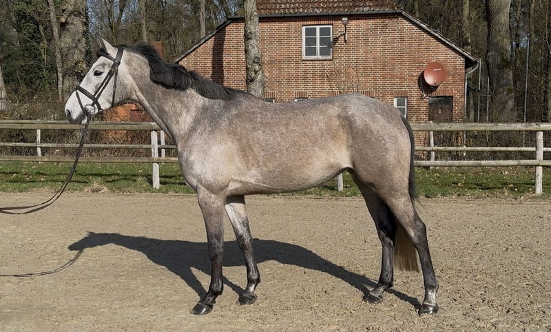 Sympathische 5j Schimmelstute von Colorit x Fairbanks 166cm groß Cool Feeling zeigt sich mit guter Vorsicht und viel Vermögen beim Springen und ist bereits Turnierplatziert. Sie zeigt sich im täglichen Umgang unkompliziert, kennt das Gelände und selbstverständlich den Außenplatz. Ein guter Tüv ist vorhanden Cool Feeling zeigt ein gelegentliches Luft-koppen was sie aber in keinster Weise beeinträchtigt. Kontakt und Videos sehr gerne per WhatsApp unter 01746979531