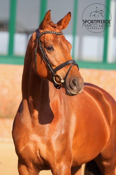 Oldenburger • Stute • *2021 • ca. 1,68 m ⚜️ Vivino – Hochadel ⚜️ ❤️ Traumhafte Fuchsstute mit Perspektive ❤️ Diese sehr typvolle Tochter von Vivino aus einer Hochadel-Mutter überzeugt durch enorme Ausstrahlung, hervorragenden Charakter und viel Qualität unter dem Sattel. Eine moderne, feinfühlige Stute mit genau dem richtigen Maß an Go und Leistungsbereitschaft für den weiteren sportlichen Weg. Die Stute wurde Ende 3-jährig schonend angeritten und erhielt anschließend ausreichend Zeit zur positiven körperlichen und mentalen Entwicklung. Noch nicht öffentlich vorgestellt – somit unverbraucht und mit viel Perspektive für ihre weitere sportliche Karriere. Ein echtes Ausbildungspferd mit Perspektive für höhere Aufgaben: Sie reagiert sensibel und ehrlich auf die Hilfen, arbeitet fleißig mit und bringt eine sehr positive Arbeitseinstellung mit. Sie vermittelt ein stimmiges, angenehmes Reitgefühl und zeigt sich jederzeit klar im Kopf. Drei sehr gute Grundgangarten, eine aktive Hinterhand und ihre klare Leistungsbereitschaft runden das Gesamtbild ab. ➡️ Direkt aus Züchterhand ✅ Sehr guter Röntgen-TÜV inkl. Rücken und Hals vorhanden 📍 Standort: bei Osnabrück 📞 Kontakt: +49 173 3013499