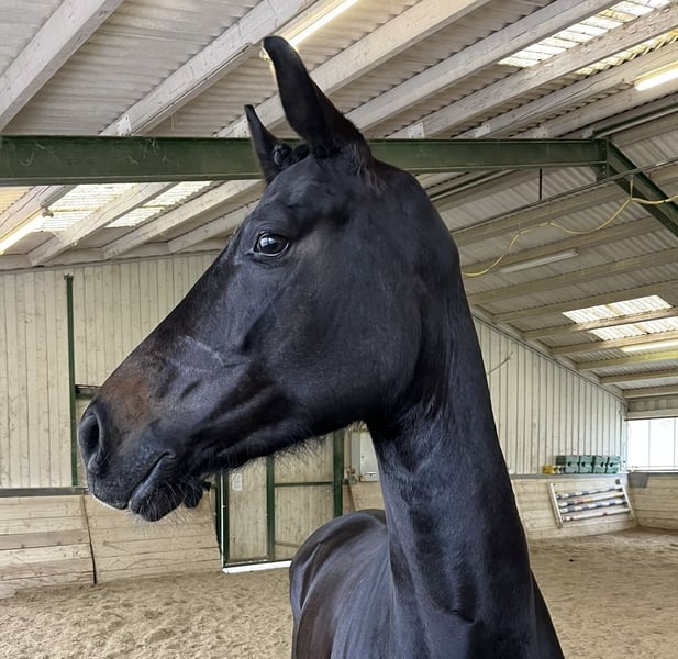 Verkaufe elegante Oldenburger Stute – ideal für Dressur! Diese wunderschöne Rappstute wurde im Jahr 2021 geboren und überzeugt durch ihre beeindruckende Erscheinung und ihr vielversprechendes Talent. Mit einem Stockmaß von 168 cm bietet sie die perfekte Größe für ambitionierte Reiterinnen und Reiter, die auf der Suche nach einem zuverlässigen Dressurpferd sind. Sie ist ein echtes Highlight für alle, die Wert auf Qualität und Charakter legen. Die Stute zeigt eine vielversprechende Grundausbildung im Dressursport und überzeugt durch ihre elegante Erscheinung sowie ihre Lernbereitschaft. Bei Interesse oder für weitere Informationen stehe ich Ihnen gerne zur Verfügung. Besichtigung und Proberitte nach Vereinbarung möglich.