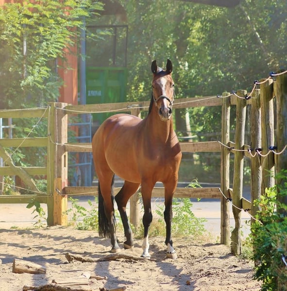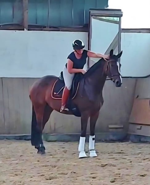 Beautiful modern dressage/broodmare 2020 by Dancier Gold/Dr. Jackson/Fürste Heinrich/Rubinstein out of our premium mare DONNA RUBINA II (Elektia dam line) . First born in July so late broken and needs sure more time to show her true quality but nevertheless absolut amateur friendly, lovely and easy to ride. no time spooky and always willing to give her best. Great rideablitly with FEI potenzial and super sweet character. Uncomplicated in handling and by all other things. Has also fun to make a smal jump or to go outside riding. Also a highlight for breeding : Dam DONNA RUBINA II has made a very good mare performance test bevor she started her breeding cariere and she has 4 generations elitemares in her pedigree. So is her older full sister for example through her stunning offsprings already elitemare also. The grand dam is sister to licensed breeding stallion, PSG horses and more state premium/elitemares... The next generation is the full sister to Rohdiamant and Royal Diamond. It is the international very well known Elektia dam line. Sire Dance Gold has made a stunning stallion test and is this year winner of the qualification for the german horse championship with 9 for all his movements and is now successful up to highest dressage. Grand sire Dr. Jackson was 14 years under the top 1% of the breeding list and well known through the rideabiltiy from his offsprings. And on the end of the pedigree Fürst Wilhelm as Wold Champion. Located in Germany (Oldenburg)