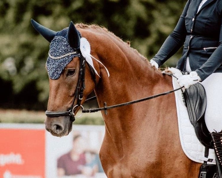 This highly rideable dressage mare is absolutely steady nerves and has consistently placed well in all show jumping competitions. She provides an excellent riding feel and is confidently at elementary level. She has already effortlessly entered the L-level dressage tests. With her outstanding gaits, exemplary attitude, and wonderful character, she has all the potential for further development. She is also very well-behaved and reliable at competitions! The mare is not only suitable for top-level sport! Thanks to her calmness and dependable nature, she is ideal for riders with a gentle touch, especially juniors and families. She is always well-mannered and motivated. Naturally, she loads without any issues. She is also fearless and a pleasure to ride in the terrain! Additionally, there is the possibility to breed a top-class foal with her. The mare boasts excellent bloodlines and is a daughter of the S-rated premium stallion My Vitality, full brother to Vitalis. My Vitality completed an outstanding stallion performance test in Denmark and was crowned Danish champion of the four-year-old riding horses. He placed at the World Championships for Young Dressage Horses at ages six and seven. We would be happy to show you this wonderful mare in person and are available for any questions at any time! Feel free to contact us also via WhatsApp: +49 176 55323449.