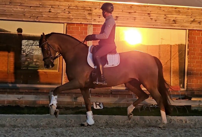 Weihjana ist eine 5 jährige bildschöne und brave Stute mit ordentlichem Schritt, Trab mit viel natürlichem Schwung und das naturtalent für Passage und Piaffe. Gallop bergauf und groß. Sie hat einen ehrlichen und absolut braven Charakter ist nicht heiß oder faul, sondern mit dem perfekten angenehm Go ausgestattet. Sie ist spät angeritten und deswegen etwas hinter der Ausbildung wie sie eigentlich schon sein könnte. Daher aber auch die Chance einen Rohdiamenten zum wirklich „günstigen“ Preis zu bekommen. Im Bezug auf ihrer Qualität und vor allem ihrem braven und artigen und immer wollenden und bezaubernden Charakter ist dies wirklich ein one in a million horse.