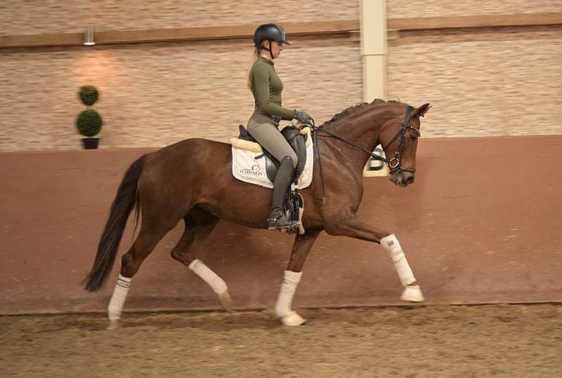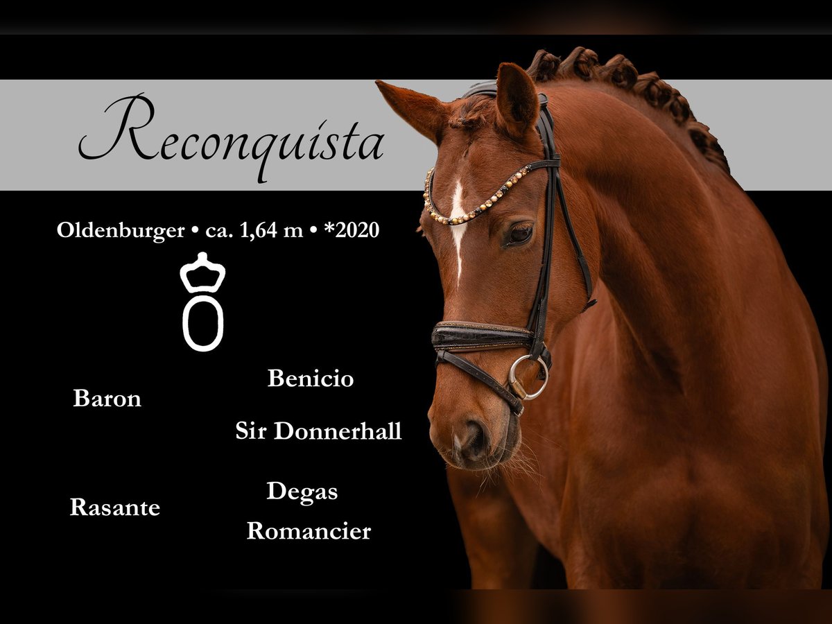 Dear Interested Parties, To arrange a viewing or trial ride, please send me a WhatsApp message. For further questions, I am available via WhatsApp during the day, and you can reach me best by phone between 4 PM and 7 PM. I look forward to hearing from you. www.angelina-devittorio.de ⭐️Reconquista⭐️ Age: 6 years (2020) Height: approximately 16.1 hh Pedigree: Baron x Degas Training level: Multiple placements in Dressage Horse Class A X-ray: Good radiographs available On behalf of the breeder, I am offering a beautiful Oldenburg mare that impresses with her quality, presence, and lovable character. Reconquista GG is a six-year-old mare with a highly interesting dressage pedigree. Her sire is Baron, a son of the celebrated Benicio out of a Sir Donnerhall dam. This genetic combination offers rideability, expression, and a high level of willingness to perform, making her extremely appealing for both sport and breeding. As a candidate for Oldenburg main premium mare, she further underscores her exceptional quality. The mare has been carefully and thoughtfully trained and developed. During her time in training at a professional riding stable under a horse management expert, great emphasis was placed on a varied and horse-friendly education. Regular trail rides and free jumping were integral parts of her training, positively contributing to her versatility and mental stability. Currently, Reconquista GG is performing confidently at a level suitable for Dressage Horse Class A, always eager to learn and motivated. She has already begun training in class L and shows promising potential for further sporting development. She has achieved excellent placings in dressage competitions at class A and was very easy to handle at shows. In daily handling, she is straightforward and reliable. She loads well, is regularly dewormed and vaccinated, and behaves calmly and cooperatively with the farrier. Overall, she impresses with her clear head, willingness to learn, and her pleasant demeanor in everyday interactions. For interested buyers, the mare’s breeding certificate from the mare performance test (June/July 2024) and the linear description are available upon request. This mare is ideal for ambitious riders seeking a high-quality young horse with potential, as well as for breeders looking to incorporate proven, performance-oriented bloodlines. ⚜️Phone: 0171-3438949 ⚜️a.devittorio@web.de ⚜️https://www.ehorses.de/angelinadevittorio Facebook and Instagram: Angelina De Vittorio