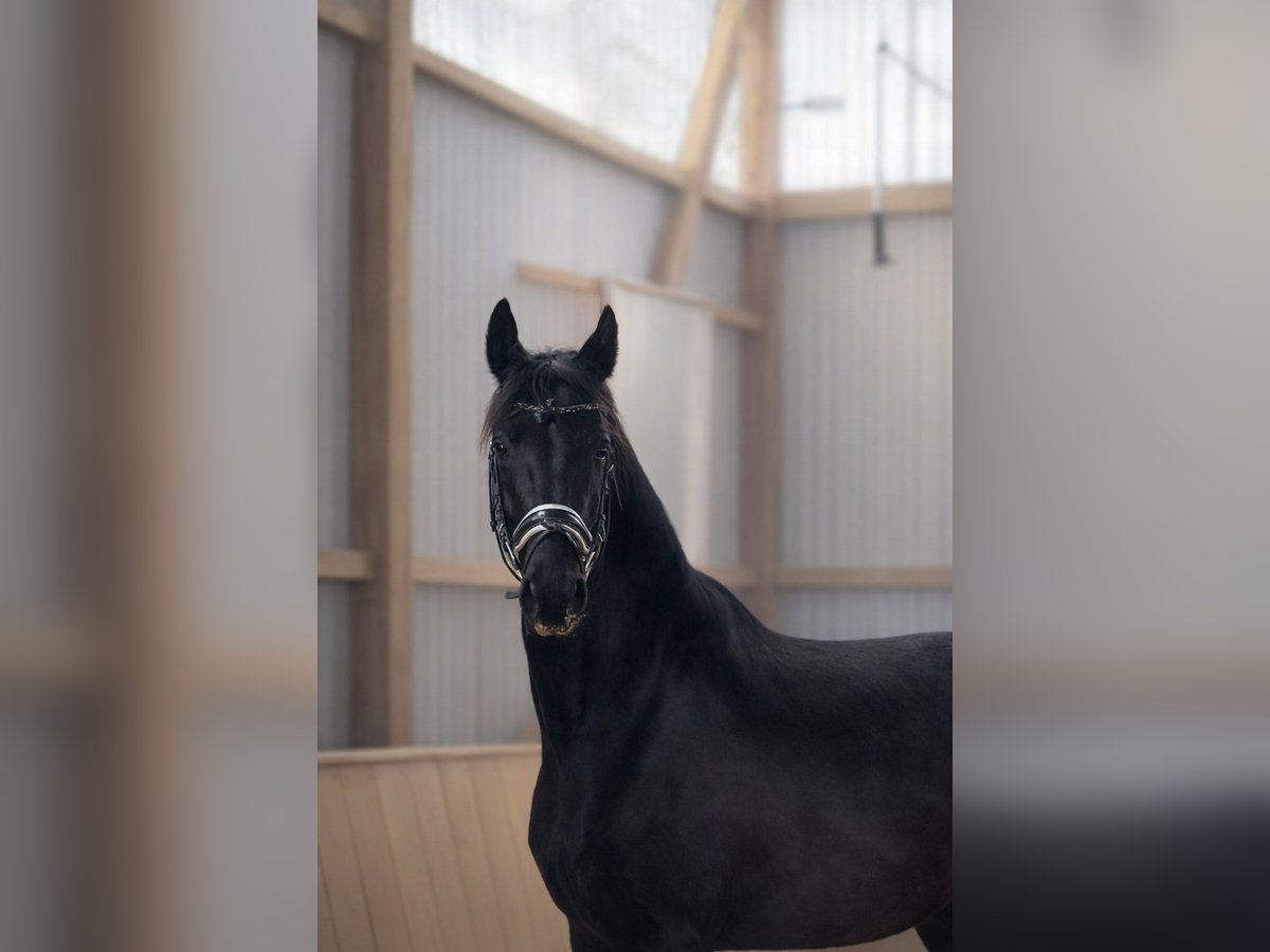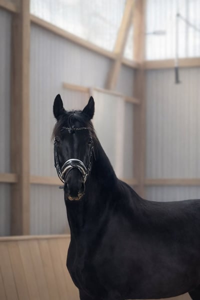 For sale is a stunning 6-year-old black mare by Escamillo x Desperado, with an expressive appearance and an interesting dressage-oriented pedigree. Under saddle, the mare has proven to be quite challenging, which is why she is not currently being further trained. She is therefore offered as a companion or breeding mare. In daily handling, she is generally nice but requires a clear and experienced handler. She has a somewhat particular character and is not suitable for inexperienced riders. A veterinary report is available; further information is gladly provided upon request. Summary: A beautiful young black mare with an interesting pedigree, seeking a suitable home as a companion or breeding mare – for experienced, patient owners with realistic expectations.