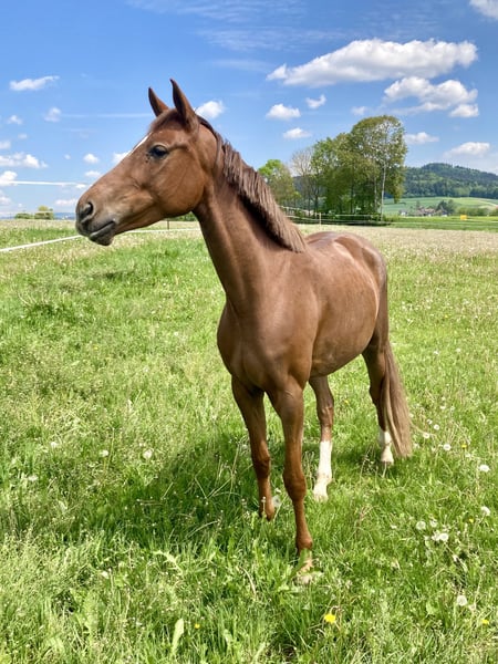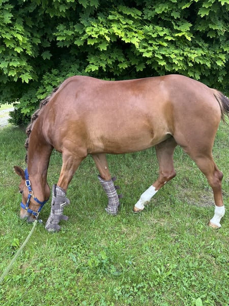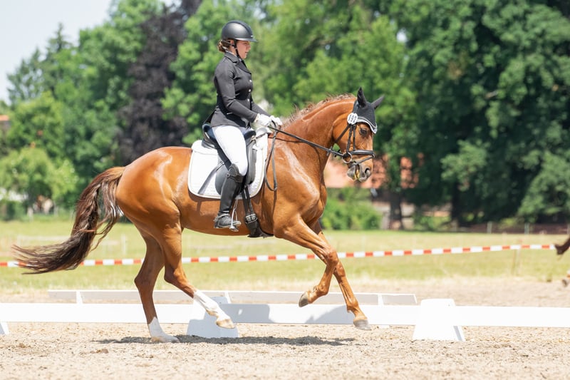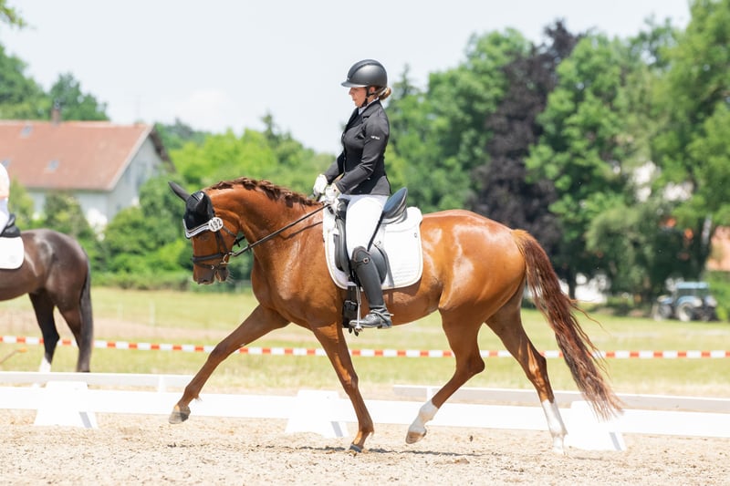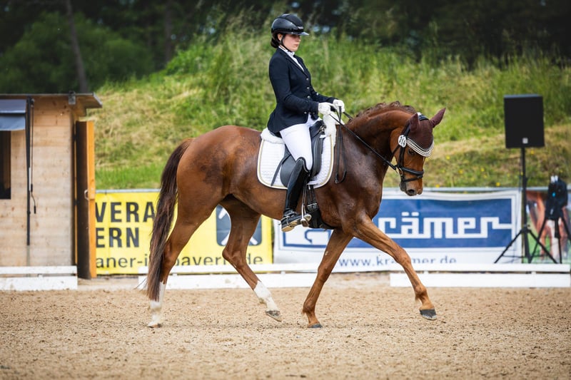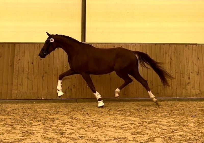 ⚜️ OLHPr. Reconquista GG ⚜️ is a mare born in April 2020, sired by Blue Horse Baron x Degas x Romancier. With a height of approximately 1.68 m, she combines size, expression, and elegance. She impresses daily with her friendly, performance-oriented, and well-mannered nature! 😊 A sporty partner, her balanced character makes her ideal for amateurs as well. She has been gently backed and is absolutely uncomplicated in daily handling, always proving to be reliable and pleasant. She has already made a name for herself in competition: In her very first riding horse test in Schwandorf Büchlkühn, she placed third, receiving a score of 8.0 for walk, canter, and conformation. Currently, she is being trained at the Dressage Horse L level - additionally, she is successfully placed in Dressage Horse A competitions, confirming her talent for the future. She comes directly from the breeder and has not had any negative experiences. She is farrier-friendly and loading-friendly, and is regularly dewormed and vaccinated. A ride out in the countryside is a welcome change and an integral part of her current training, posing no challenge for her. Last year, she successfully completed the mare performance test as a main premium candidate at the Oldenburg Horse Breeding Association, making her highly interesting for breeding as well. (Breeding book excerpt available under documents) Good X-rays from December 2024 are available. Reconquista is a promising partner for anyone looking for talent, character, and perspective. To spare her from riding tourism, a fee of €35 is charged for trial rides. I am happy to answer any further questions by phone.