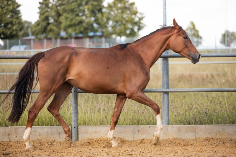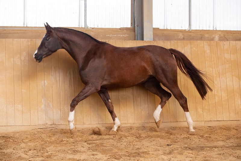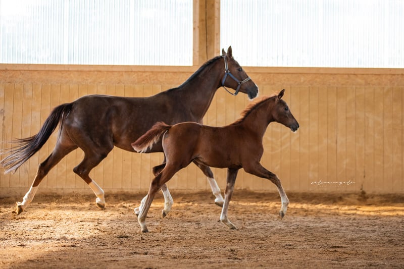 6-year-old DFS v. Benicio out of VPSt. v. Florestan I x Donnerschlag. This horse is characterized by three qualitatively good basic gaits. It has a friendly, people-oriented temperament. The mare is easy to handle and well-balanced. She comes from our breeding and raising program. Not bred or pregnant for 2026. Image 4: Full sister Image 5: Full sister with foal sired by Vivaldos at her feet The full sister and her offspring are available for viewing. If you have any further questions, please call me at 0152 09427876 or send me a message.