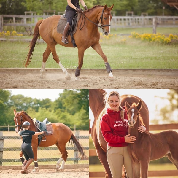 Anna is geboren bij mij en is een enorme schat! Video op aanvraag (Whatsapp 017661493902). Ze houdt ervan om te werken, is altijd zeer gemotiveerd en brengt veel plezier. Ze heeft al kleine sprongen gemaakt en is dressuurmatig op niveau A, kan aan de hand al behoorlijk piafferend lopen en beheerst cirkelpassen zoals spanskpas, liggen en kan worden gereden aan de halster. Tijdens het buitenritten is ze sowieso het meest brave paard ter wereld. Ze is al op verschillende evenementen geweest; applaus, lawaai en dergelijke interesseren haar totaal niet. Ze laat zich probleemloos alleen laden en vervoeren, houdt van grondwerk en contact met mensen. Knuffelsessies, lang poetsen, dat doet ze graag. Ondanks haar grootte is ze heel voorzichtig en fijn in de omgang, ook tijdens het rijden. Ze heeft haar leven tot nu toe vooral op een paddock doorgebracht en ik zoek een echt top- en levensplek voor haar. Een 5-sterren thuis is een MUST! Ze komt uit een zeer succesvolle bloedlijn; haar moeder is zelf internationaal succesvol in de Grand Prix, en haar halfzus Amazing Figurea OLD heeft vorig jaar meegedaan aan het Bundeschampionat. Mijn focus ligt niet zo zeer op sportief succes, maar Anna heeft zeker potentieel voor hogere taken in deze discipline. Als je interesse hebt in mijn werk: (@hello_horses_official op Instagram)