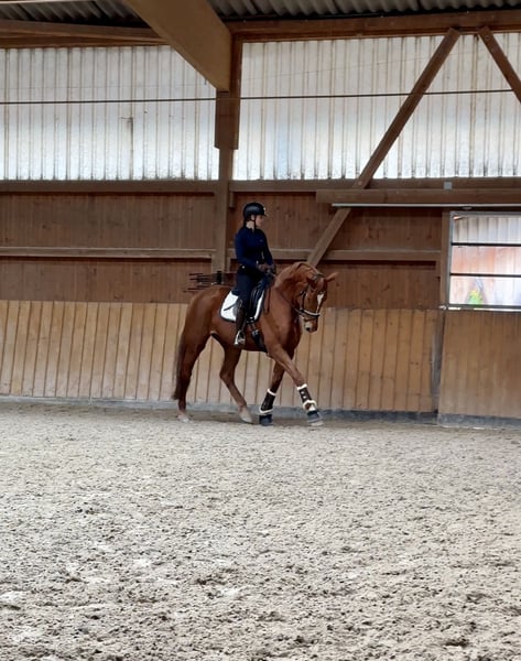 Sienna ist eine außergewöhnlich schöne und liebe Stute, die mit Charme, Ausdruck und Rittigkeit überzeugt. Sie ist 6 Jahre alt, befindet sich auf Dressur A/L-Niveau und hat eine solide, altersgerechte Grundausbildung. Im täglichen Umgang zeigt sie sich immer freundlich, mutig und unkompliziert. Unter dem Sattel ist sie arbeitswillig & ausgeglichen. Im Gelände ist sie ein echter Verlasspartner – brav, sicher und unerschrocken, egal ob allein oder in der Gruppe. Mit ihren überdurchschnittlichen Grundgangarten bringt sie alles mit für das große Viereck und ist gleichzeitig ein Pferd, das jeden Tag Freude macht. Ein optimales Ausbildungspferd für den ambitionierten Reiter.
