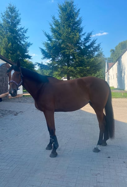 I own a beautiful 6-year-old Oldenburg mare with an excellent pedigree. She has competed up to P-class and has the potential for more. Very rideable, easy to handle, and well-behaved, she is calm around the blacksmith, during clipping, and other procedures. She is not afraid of jumps, water obstacles, or walls; nothing fazes her. She is straightforward and smooth to ride. She stands approximately 165 cm at the withers. For more information, please contact me privately.