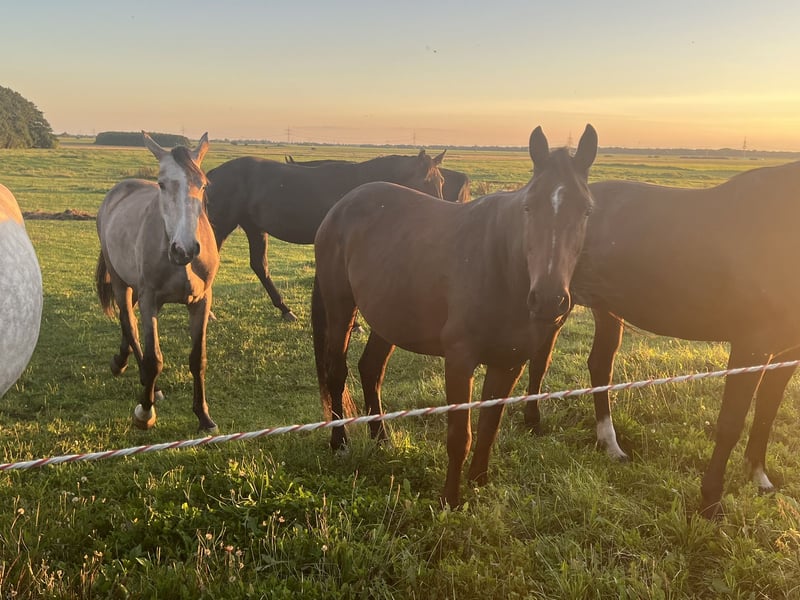 Conny, è una bellissima cavalla con molte ottime andature di base e un carattere affettuoso. È ancora da addestrare, ma è molto facile da gestire. I suoi fratelli competono con successo nello sport sotto gli amatori. Proviene da una linea di sangue molto buona! Direttamente dall'allevatore. Il TÜV non verrà effettuato a questo prezzo!