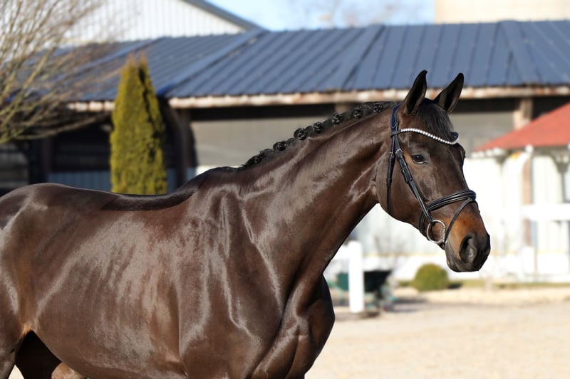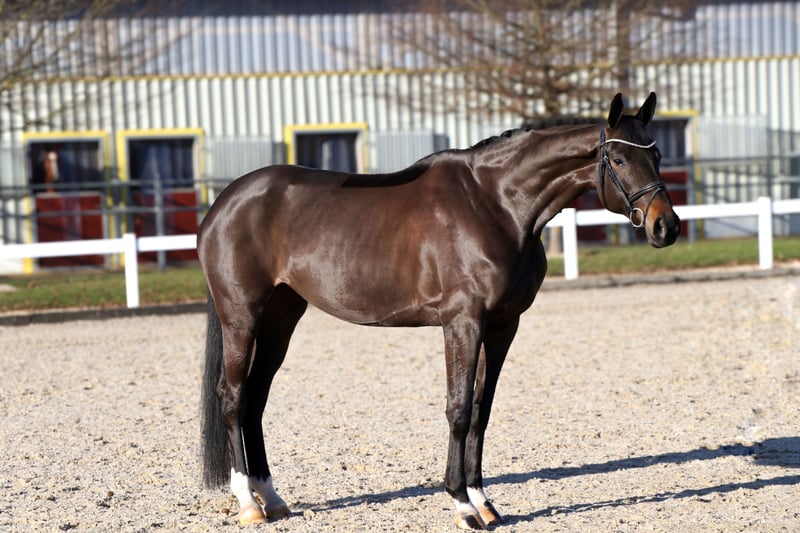 « Goldie » est un cheval pour l’avenir. Elle possède un caractère doux et calme, est sociable avec ses congénères, ouverte et amicale envers l’humain, et très bien éduquée. Cela la rend totalement facile à manipuler : ferrure, chargement, rien ne pose problème. Goldie n’est pas chaude, on ne remarque pas de chaleurs ou autres signes, et elle n’est ni chaude ni trop sensible au niveau des jambes ! La jument nous arrive directement du naisseur. Goldie séduit un large public. Elle convient aussi bien à un cavalier de dressage ambitieux, à la recherche d’un cheval à former et à faire progresser, qu’à un amateur. Grâce à son tempérament calme et fiable, elle gère très sereinement le cavalier et les nouvelles situations. En selle, Goldie impressionne par ses excellentes allures de base et sa grande qualité de dressage. Elle se déplace en extension avec aisance, est confortable en selle et toujours désireuse d’apprendre. Fine au mors, réactive au siège, ses qualités permettent à chaque cavalier de briller. Elle peut faire des galops en extension, des changements simples, des figures de côté, des travers, et réalise déjà de très beaux changements de pied. Goldie a déjà participé à plusieurs stages et entraînements en extérieur, qu’elle a parfaitement maîtrisés. La charger seule et la seller en dehors de chez elle ne pose aucun problème. Elle connaît le travail à la longe ainsi que le travail avec des barres et la gymnastique, et reste toujours motivée et très expérimentée dans ces exercices. Informations importantes : • Les tailles au garrot sont estimées et non mesurées précisément. • Toutes les descriptions sont des évaluations subjectives du vendeur et ne constituent pas des garanties. • L’organisation d’un transport vers sa nouvelle maison ne pose aucun problème. Des radiographies récentes sans anomalies ainsi qu’un examen clinique impeccable sont disponibles. Pour toute question ou pour organiser une visite, n’hésitez pas à nous contacter par téléphone au 015140555583. Nous sommes joignables également le week-end et pendant les jours fériés. Une séance d’essai en dressage peut être organisée à tout moment.